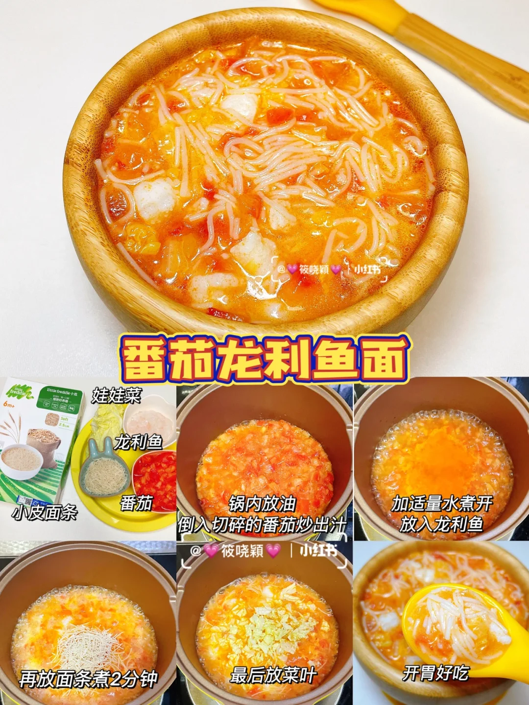 🔸做法:番茄翻炒出汁,加适量水煮开;放龙利鱼和面条煮2分钟;最后放入青菜