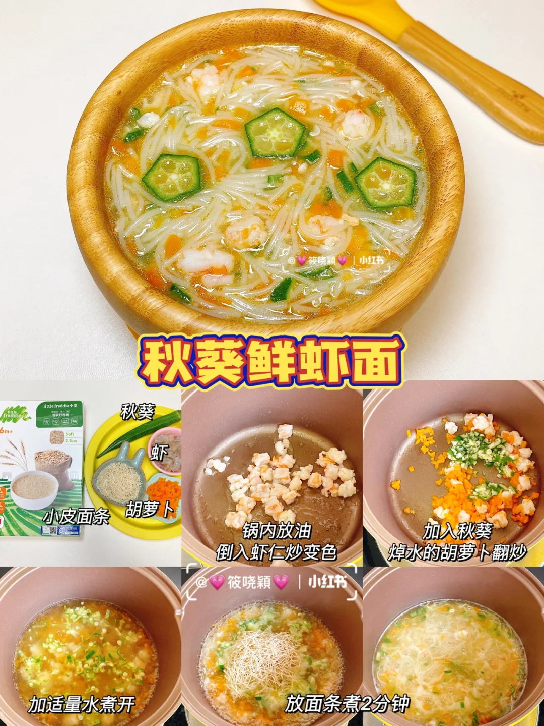 🔶食材:秋葵,虾,胡萝卜,小皮面条