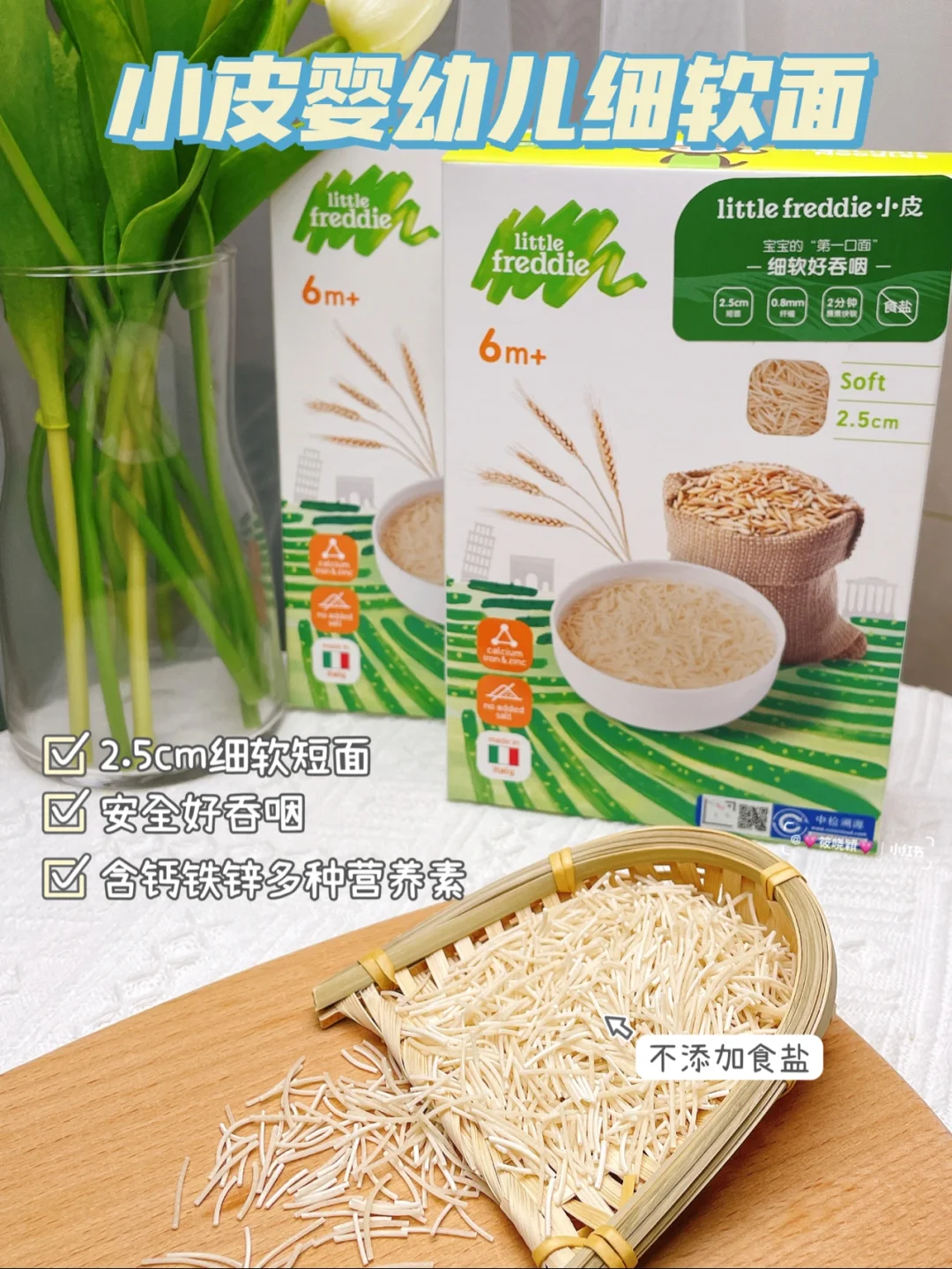 小皮婴幼儿细软面一一从6个多月开始就一直吃到现在,长度刚刚好,直径也很细,只需要2分钟就熟了,煮后绵软顺滑,小坑洞的设计很容易吸附汤汁,宝宝也很好咀嚼吞咽,很适合作为宝宝的第一口面条