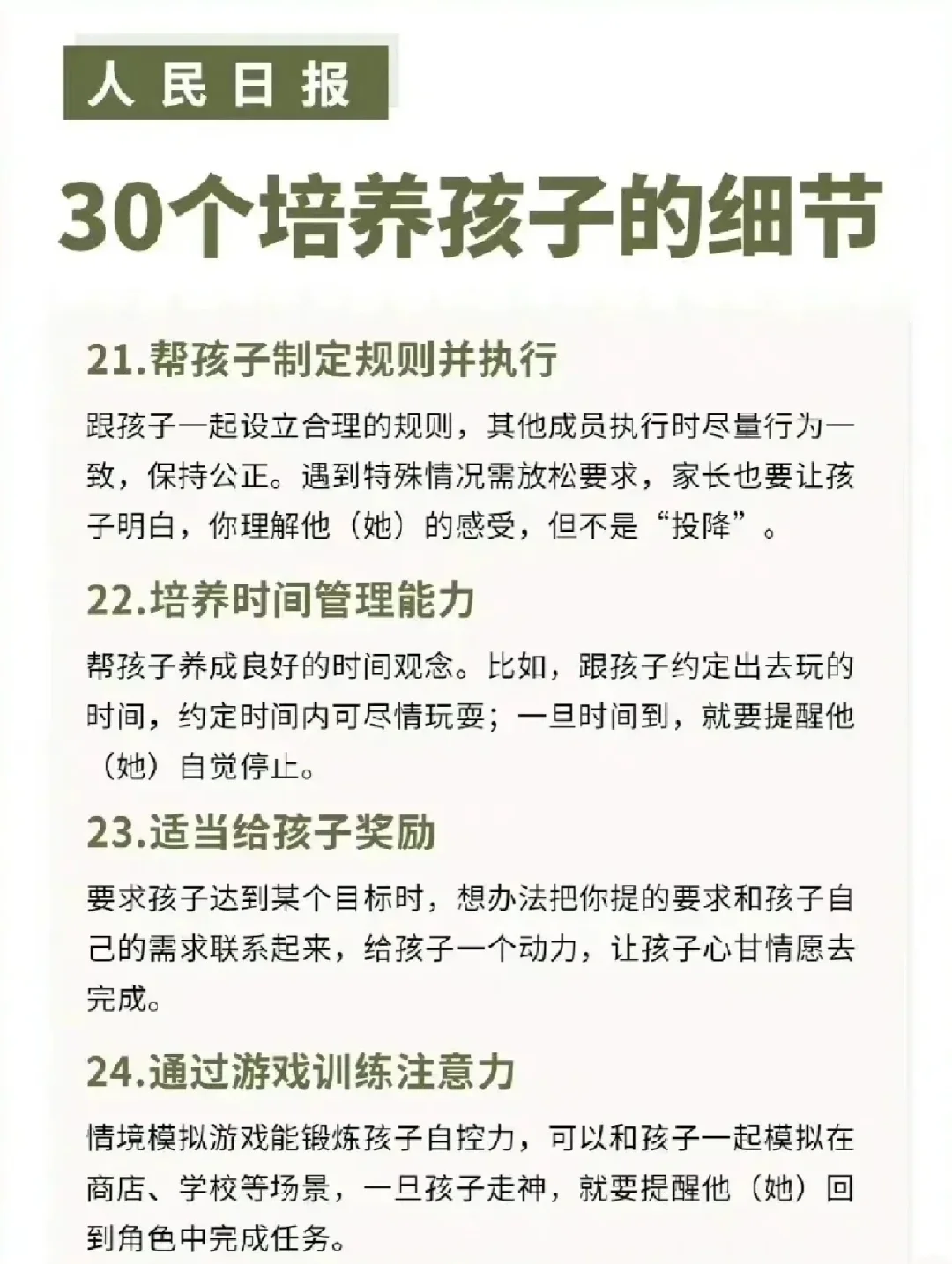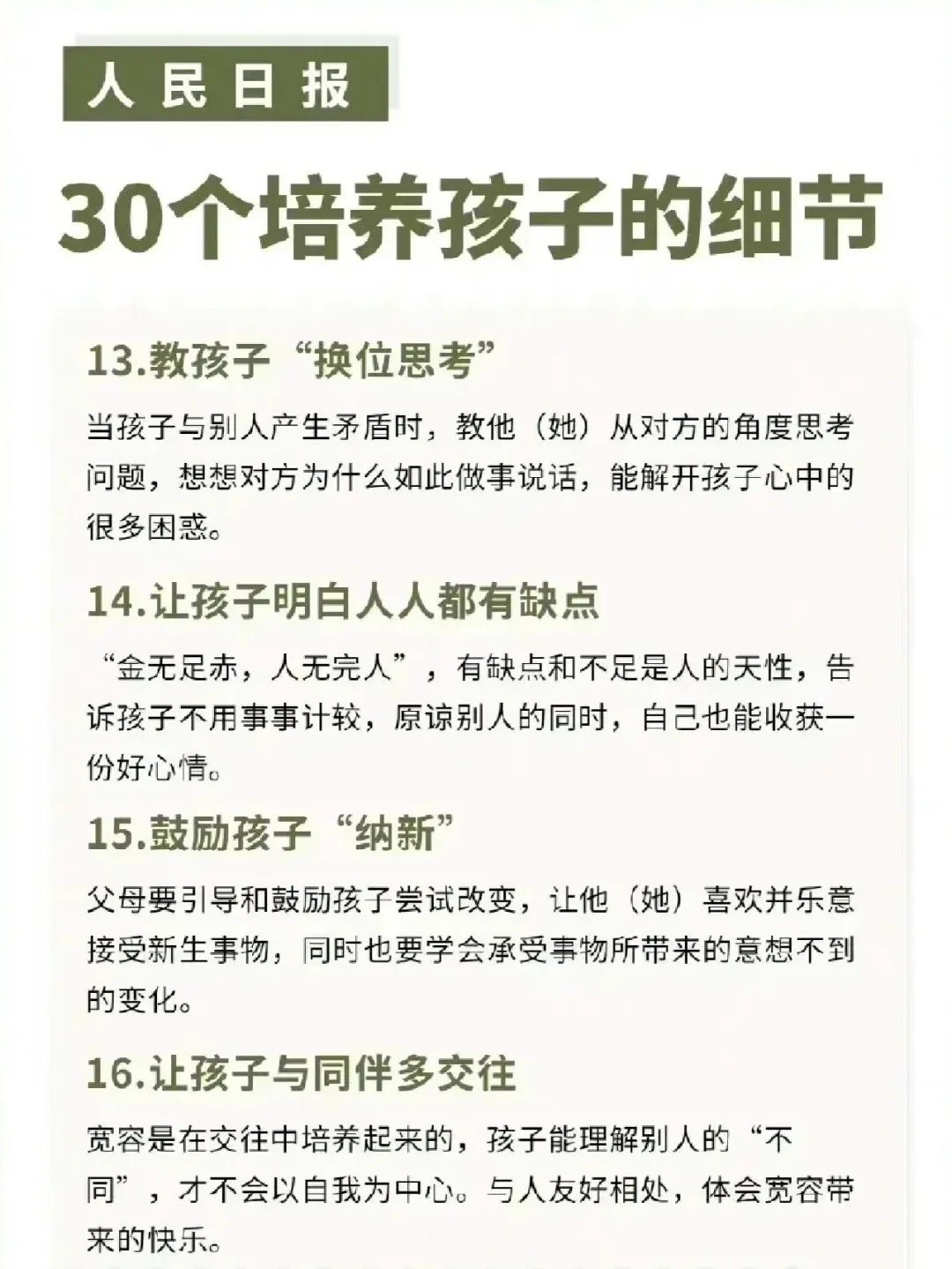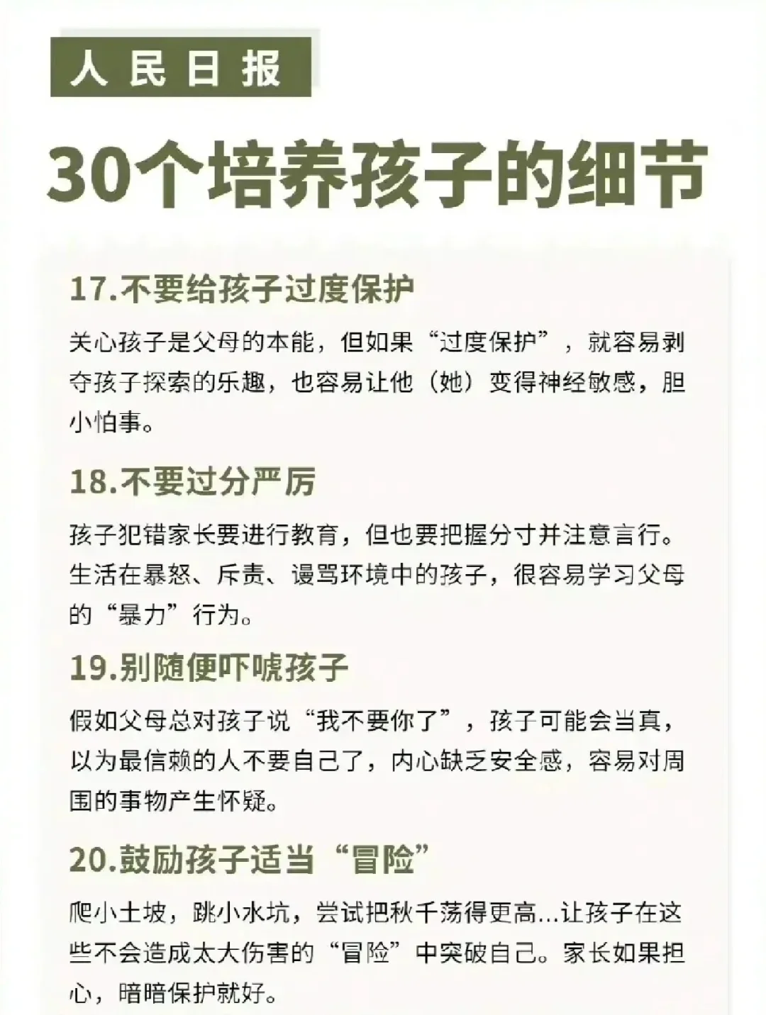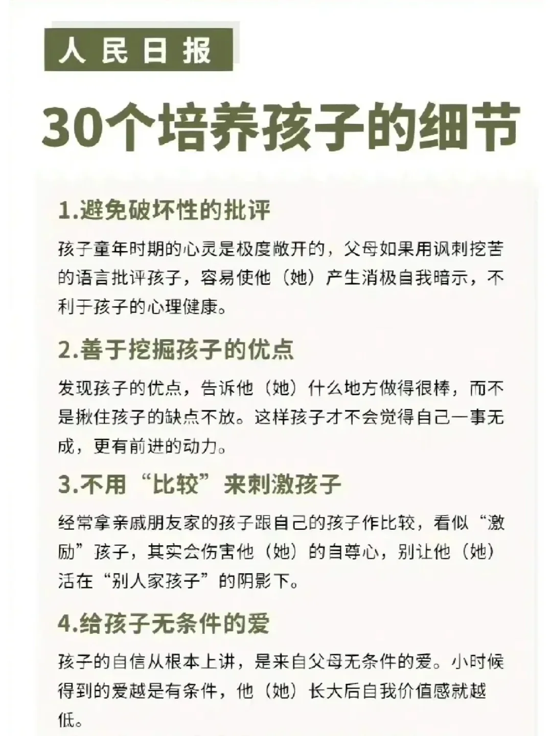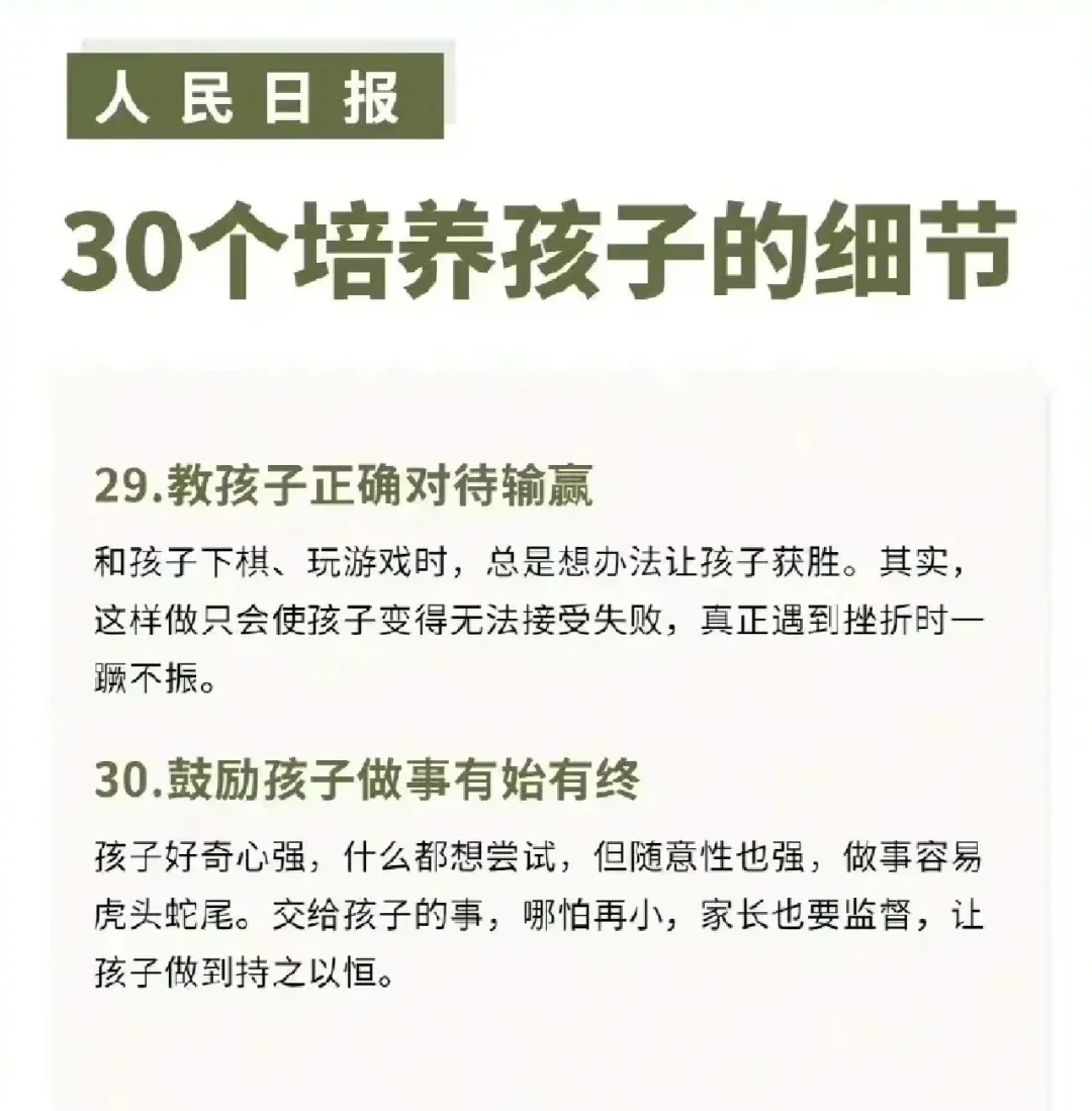 人民日报公布:30个培养孩子的细节
