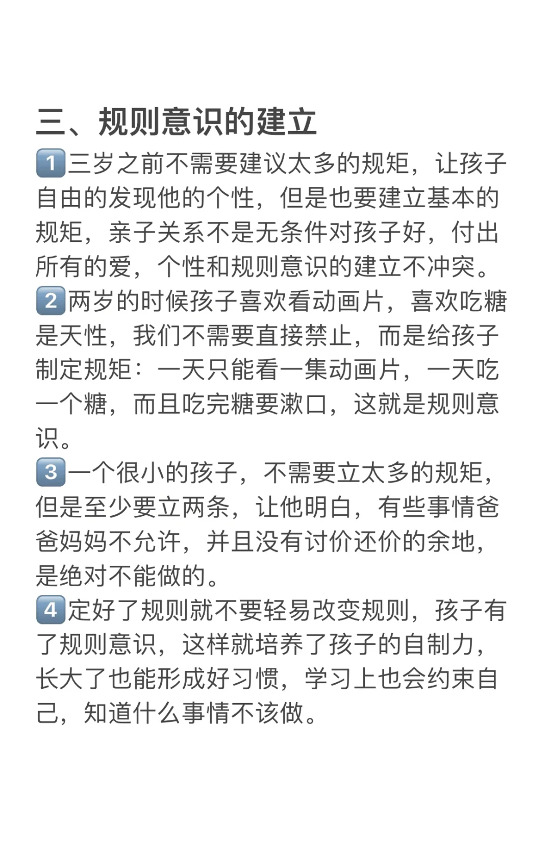 1⃣️三岁之前不需要建议太多的规矩,让孩子自由的发展她的个性,但是也要建立基本的规矩,个性和规则意识的建立不冲突