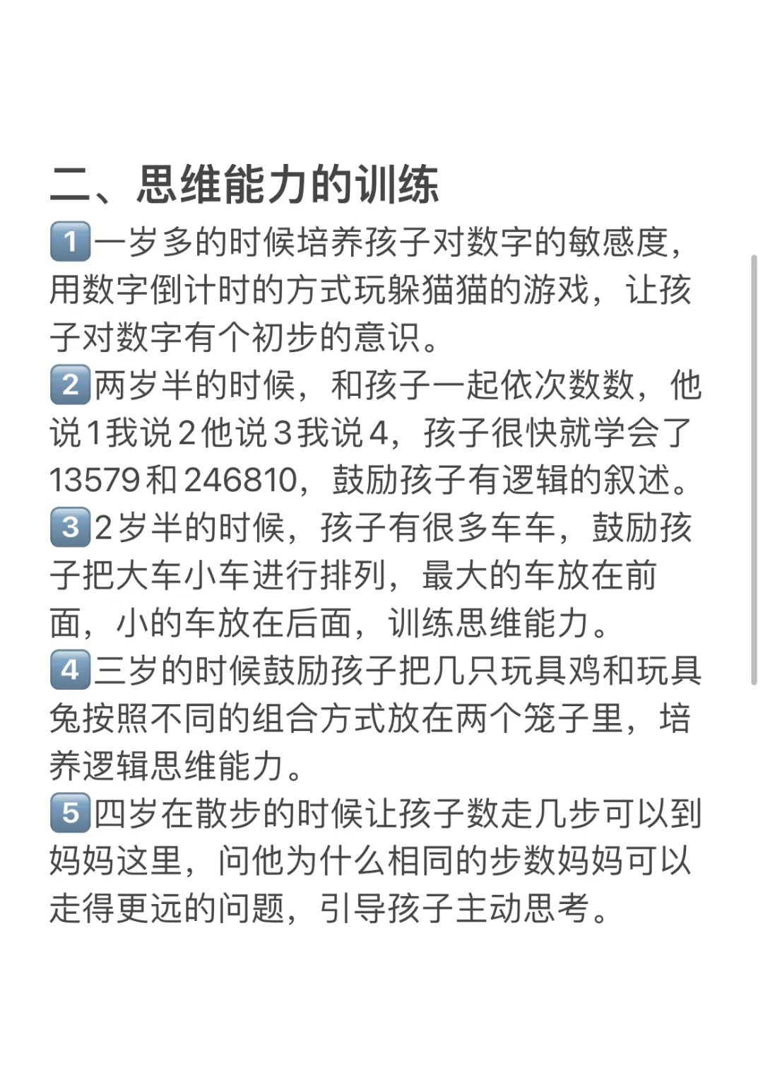 5⃣️四岁在散步的时候让孩子数走几步可以到妈妈这里问他为什么相同的步数妈妈可以走得更远的问题引导孩子主动思考