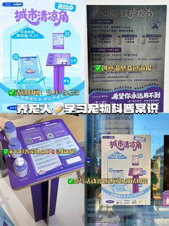 ✅ 答题赢好礼:完成“心脏守护测试”并在反面签署“养宠护心公约”,将所答题目交给店员,即可获得症状同款护心胶囊vq10试吃装⼀份