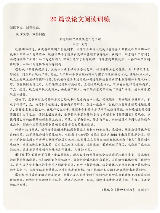 [火R]进入初三语文阅读出现的一大变化,就是语文课本上和阅读题中多增加了议论文。