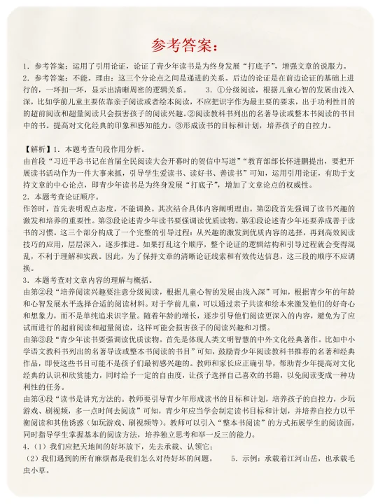 4、请简述本文(某段或某几段)的论证思路