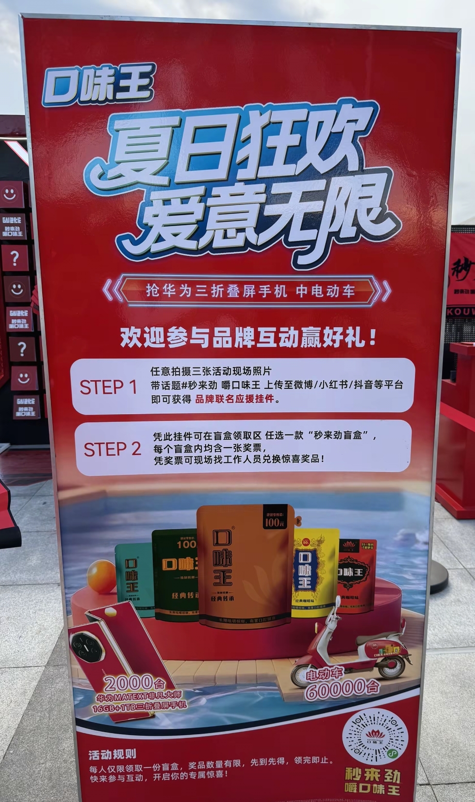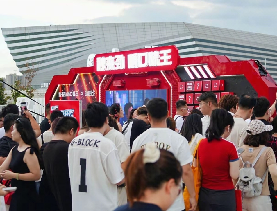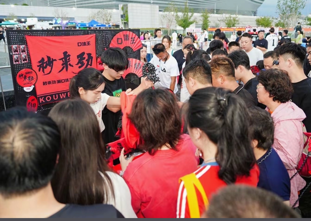 8月17日,大河报·豫视频记者根据现场网友拍摄画面看到,场馆外"秒来劲嚼口味王"的互动标语格外醒目,许多观众都在此驻足参与互动。