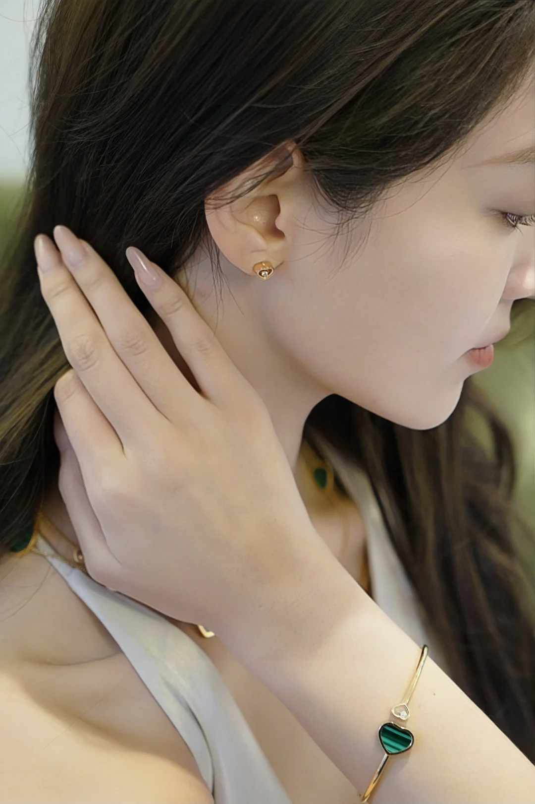 搭配的萧邦Happy Hearts系列珠宝也让我一眼心动,心形符号与灵动钻石交相辉映,简单又美好,就如它的名字般给人带来无限快乐感。