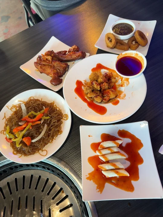 🌟菜单很丰富,肉、小吃的选择很多,有各种bulgogi、steak、五花肉、牛仔骨、虾、鱿鱼之类的。小吃我们很喜欢炸鸡、jap chae水晶粉、年糕等