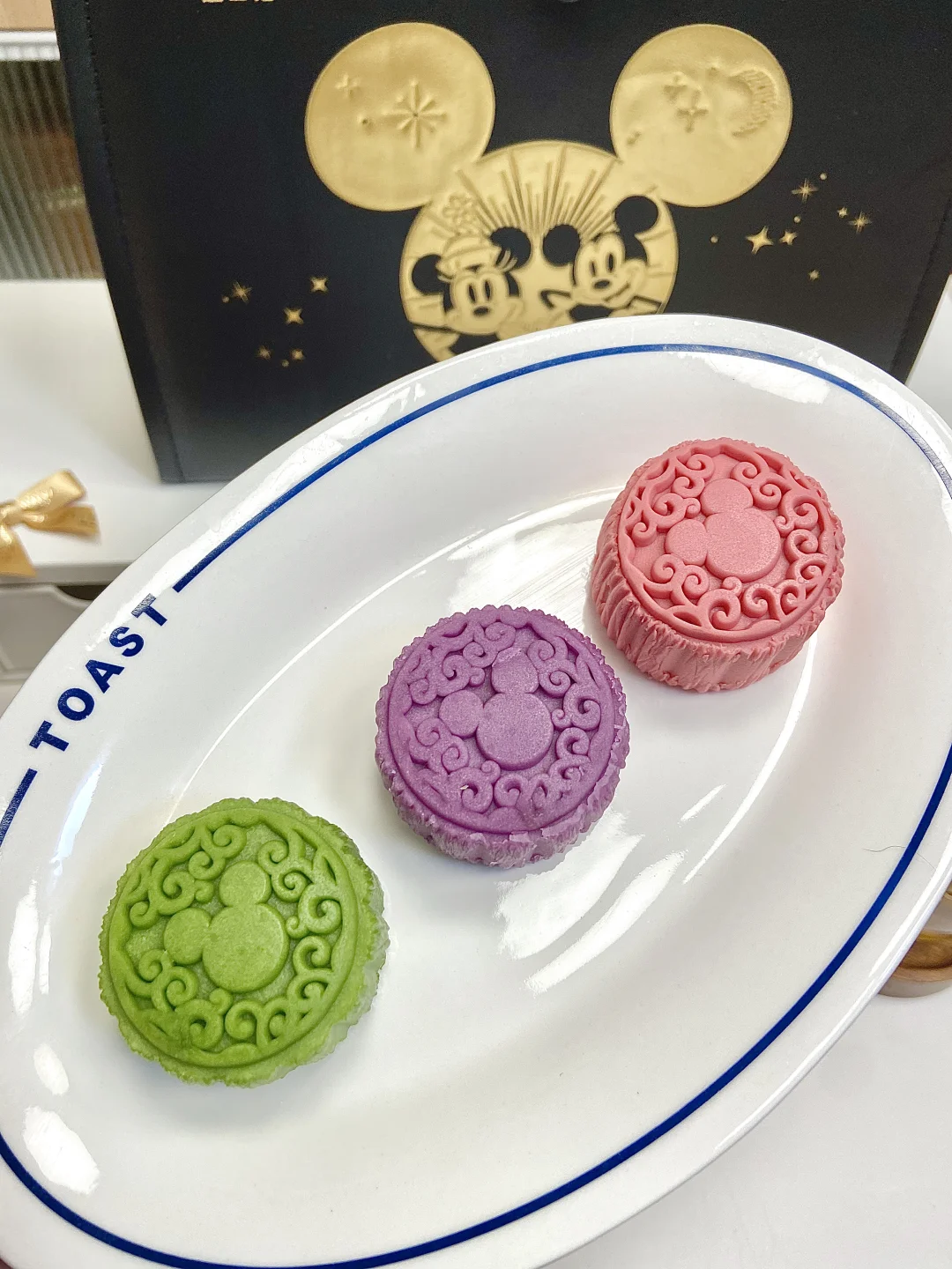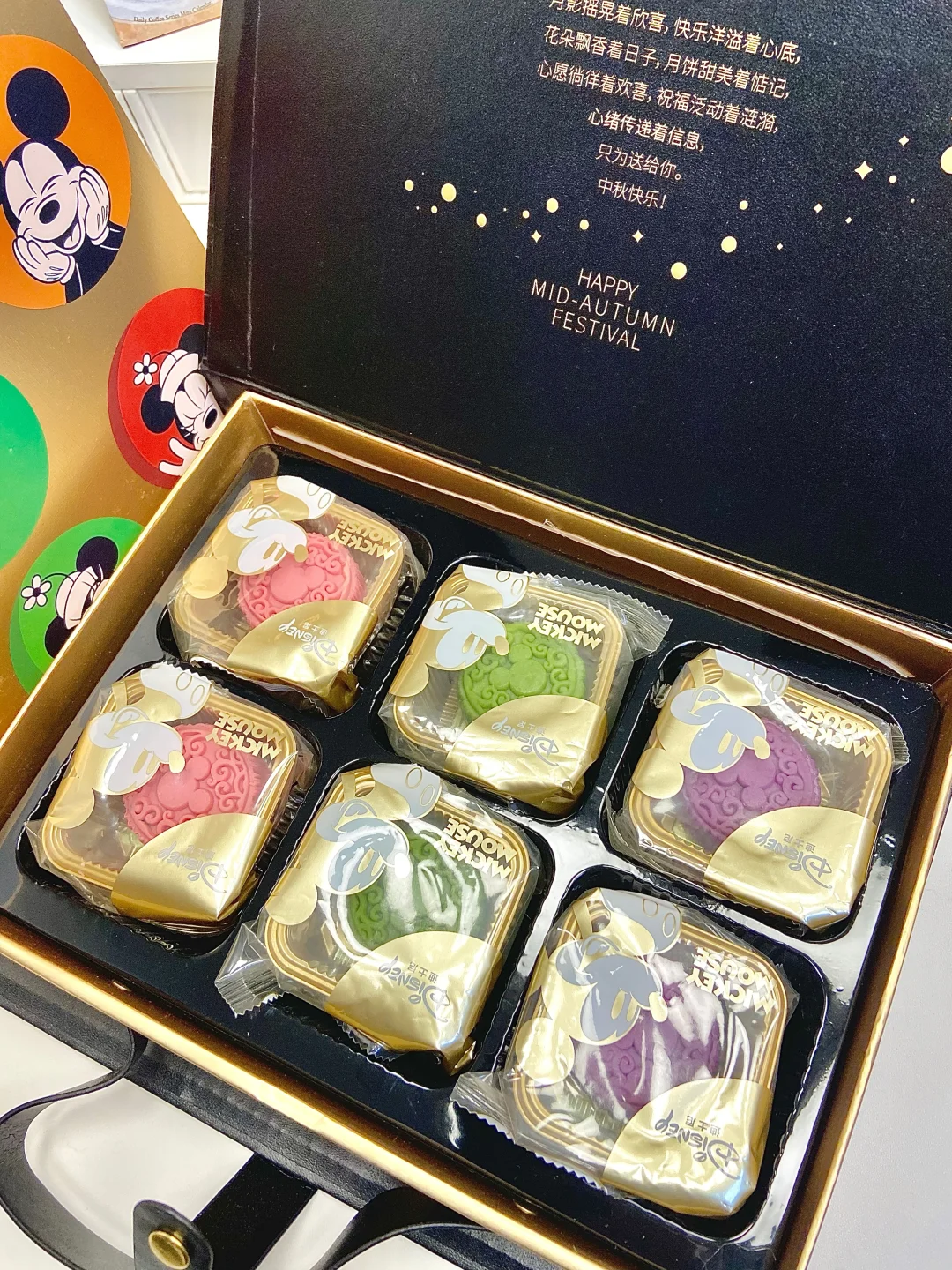 黑金配色的皮质手提包设计 颜值也太高了[鼓掌R][鼓掌R][鼓掌R] 这中秋福利精致感已拉满! 随便一拍就能惊艳朋友⭕️ 里面是三种口味的月饼 玫瑰🌹豆沙软糯糯的 细腻的豆沙融合着淡淡花香 抹茶🍵味茶香满满 入口细腻 很清爽绵密 香芋口味[哇R]糯叽叽 一点不齁甜 咬在嘴里还有芋香 这个中秋,就让迪士尼月饼礼盒🎁 带我们一起在童话世界里享受甜蜜时光吧[两颗心R]