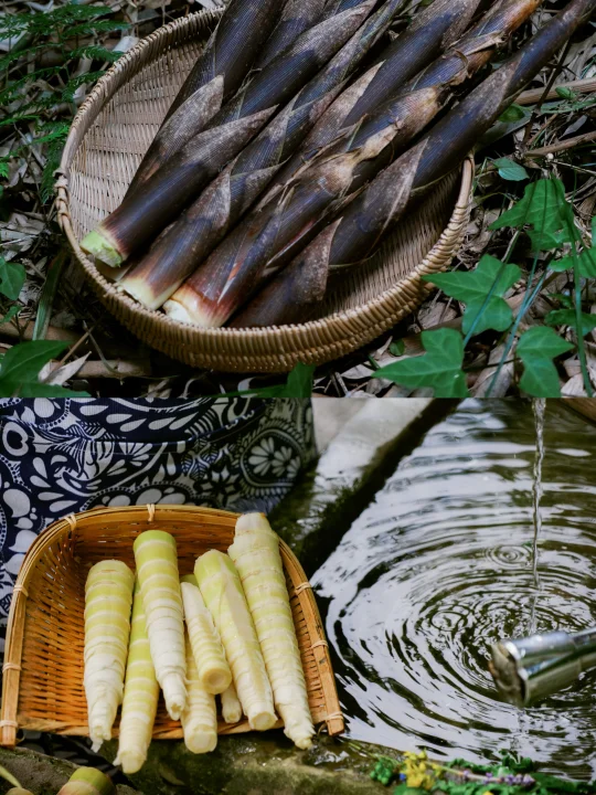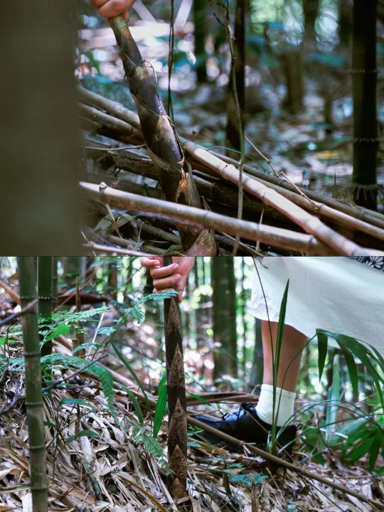 ⏰10:30跟着管家进后山竹林🎋 学习辨认野竹笋+采摘技巧 亲手掰下的笋子能带回厨房加工 立刻就能吃到自己摘的鲜笋炒肉!
