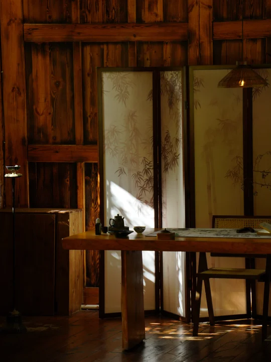 ⏰9:00 早餐过后在古朴的中式茶室沏一壶茶,阳光洒在桌上,大山里的一天在自然里慢慢醒来🍵