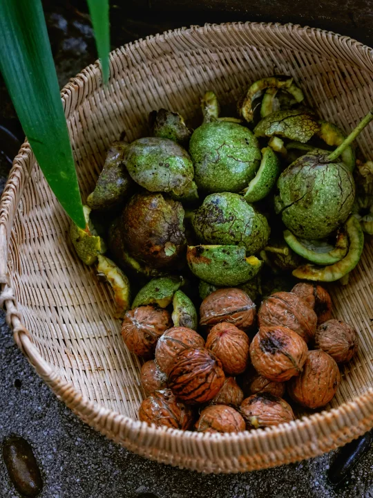 ⏰11:00核桃林打卡时间🌰 用竹竿打核桃、捡落地新鲜核桃 现场剥皮洗净后烘干 香香脆脆直接给我香迷糊了~