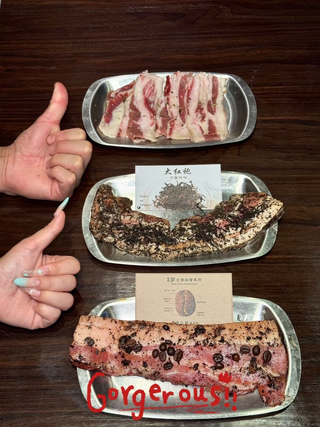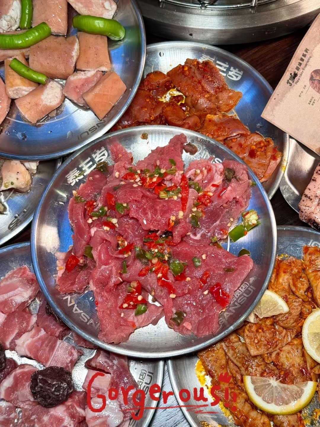 九种口味的五花肉直接戳中我的心巴! 小粒咖啡五花肉,咖啡控狂喜,每一口都能嚼到咖啡粒的香气☕️ 一根葱五花肉绿油油的,颜值和口 味并存,吃起来葱香十足🌿大红袍五花肉醇厚香浓,肉食爱好者必冲~ 现切牛肉也很新鲜,牛胸口弹牙,剁椒牛肉够劲辣🌶️ 还有木姜子刀口肥肠,独特的味道让人回味无穷~ 9.9元炭火费还送无限续的时令果蔬,西瓜、土豆、生菜随便吃,人均五十不到,性价比之王,冲就完了! 地址:广元市利州区金橄榄商业广场一楼1-104秦三岁炭火烤肉