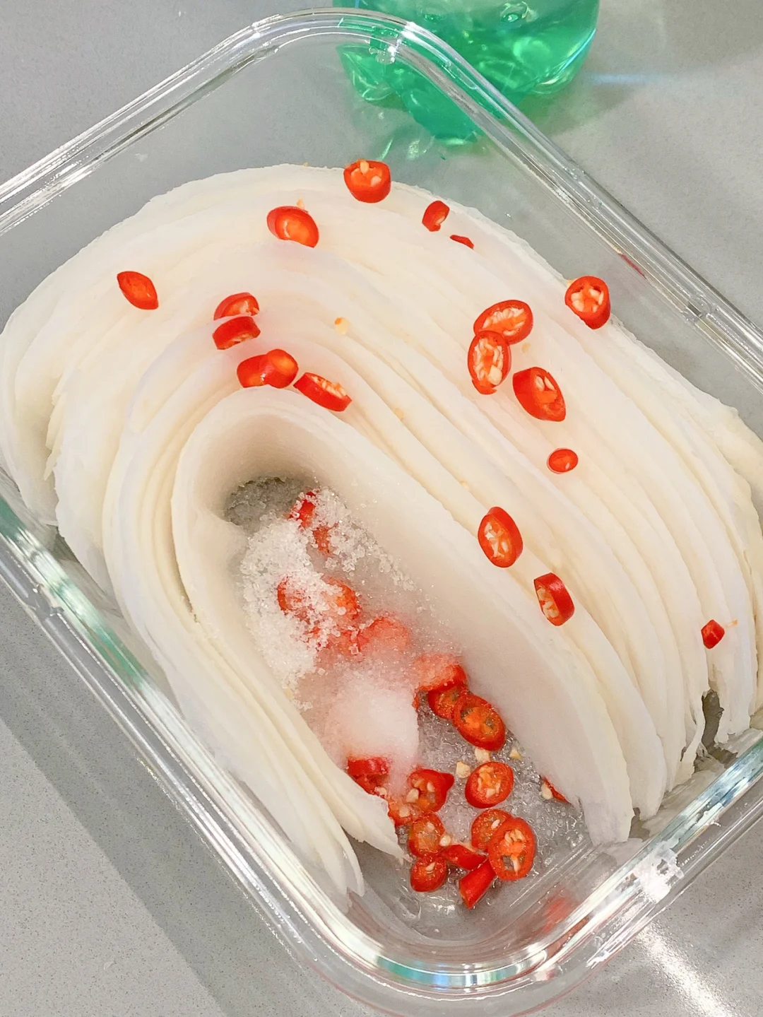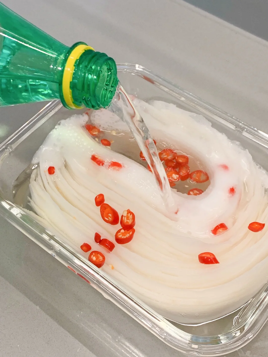 家人们!看我又挖到啥好吃的!! 长在我心尖尖上的雪碧萝卜!! 清脆爽口!好吃到上不到十分钟炫完!! 餐前开胃小菜!大鱼大肉后拿来解腻! 都超棒!一定要试试!吃完你会回来感谢我的~ ——————— 食材:萝卜、雪碧 做法: 1、萝卜用果刀刮成皮!放入饭盒里! 2、加小米辣、-勺盐、三勺糖、3勺醋、100MI矿泉水、200MI雪碧!腌制1小时即可!