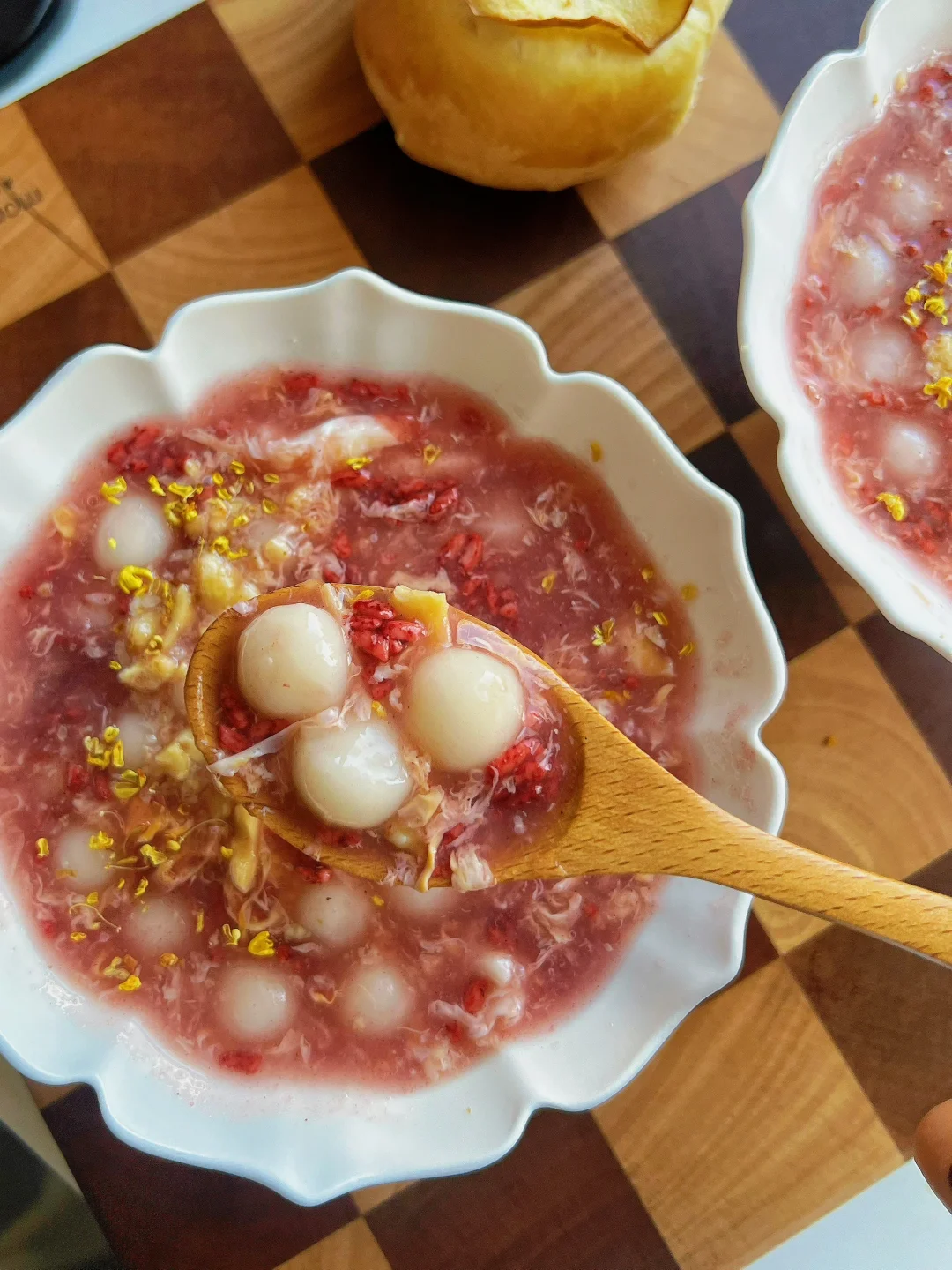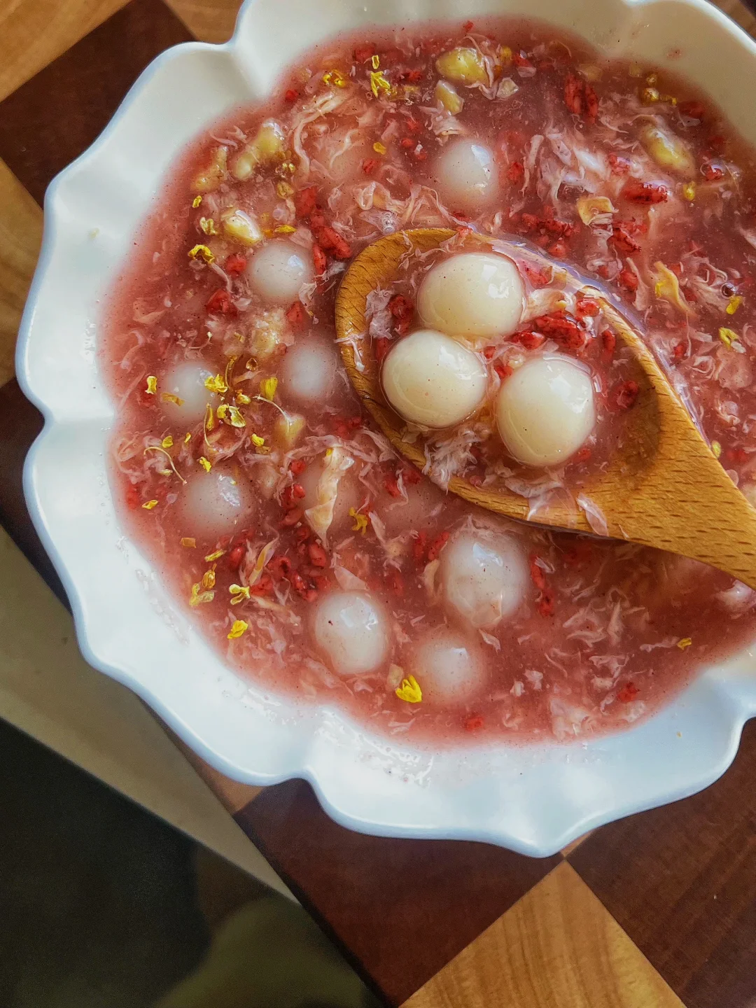 喝上一碗热乎乎的玫瑰酒酿小圆子