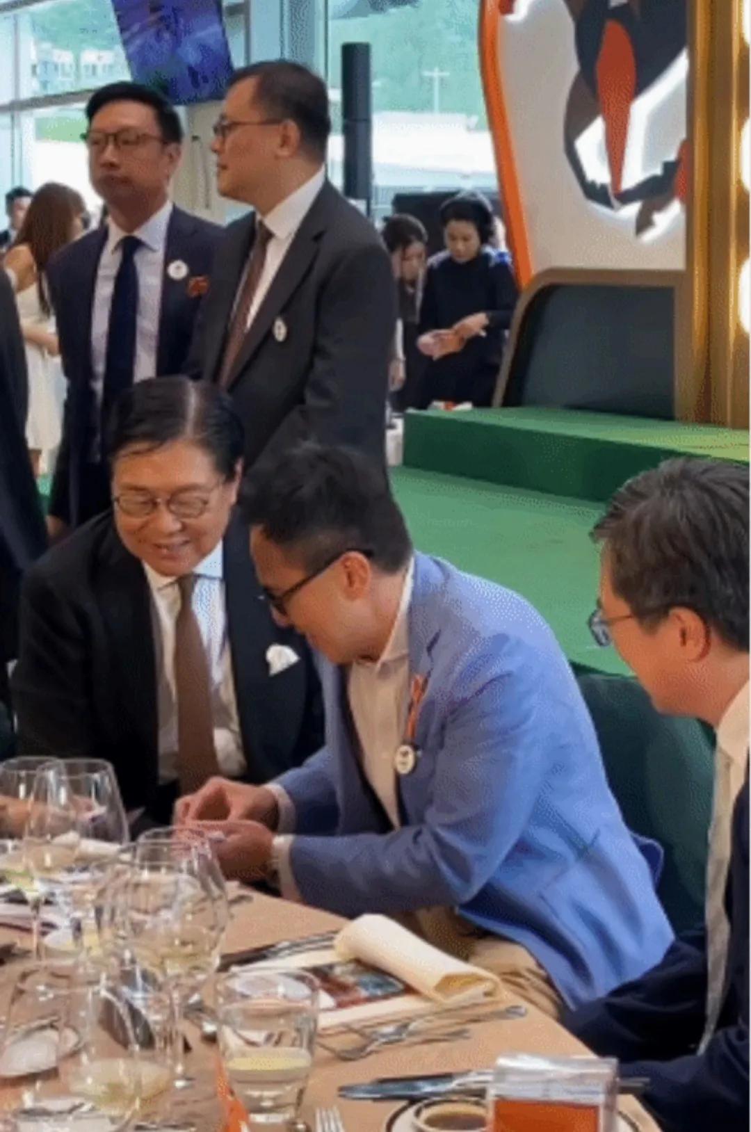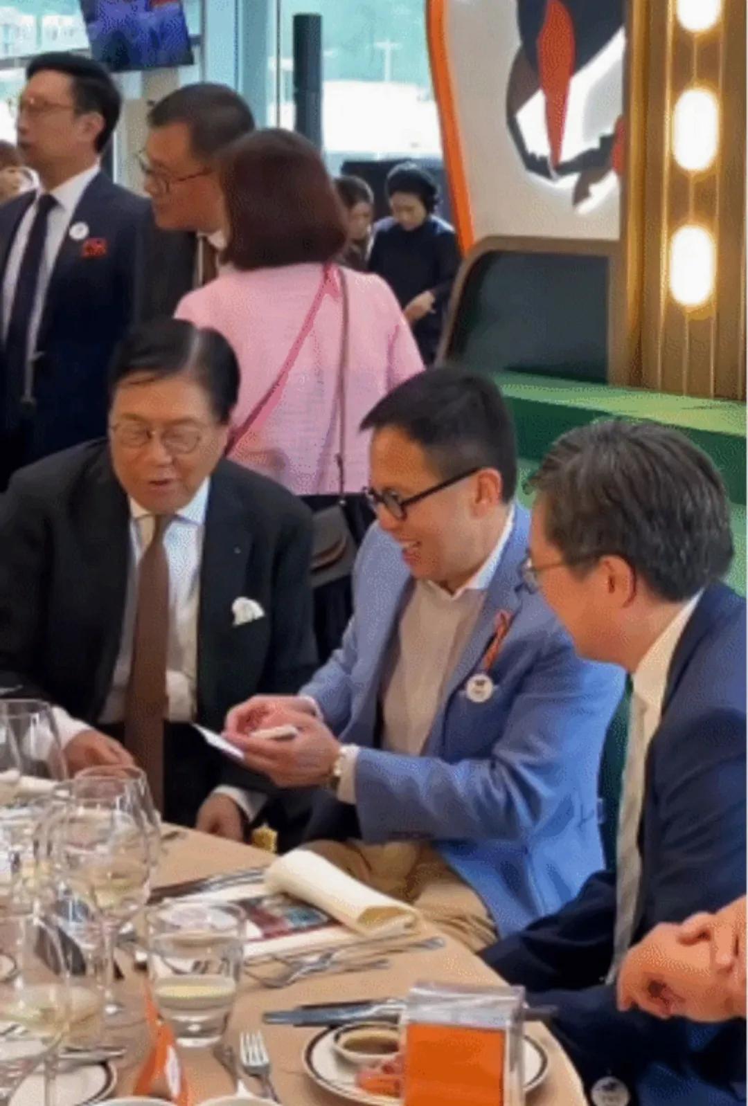 李泽楷现身马会参加聚会,能够坐在这张桌子上的都是一些商界的精英,大家把李泽楷围在中间,看得出他的地位非常的独特。李泽楷在席间和别人互换名片,如今很多大老板已经不再用名片了,因为他们可能发名片太麻烦,不如加微信更方便一些。