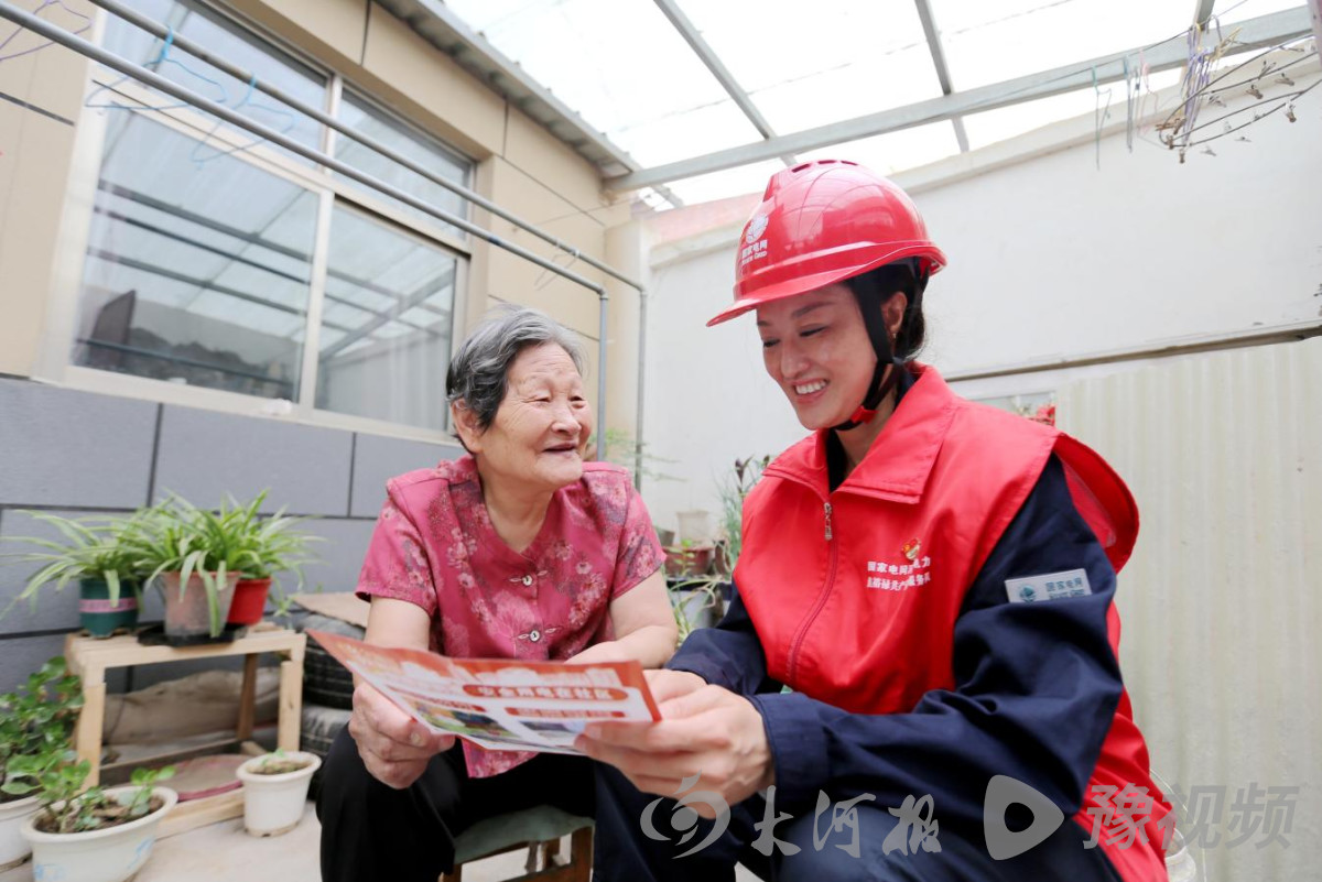 国网温县供电公司焦裕禄共产党员服务队队员在家访宣传安全用电