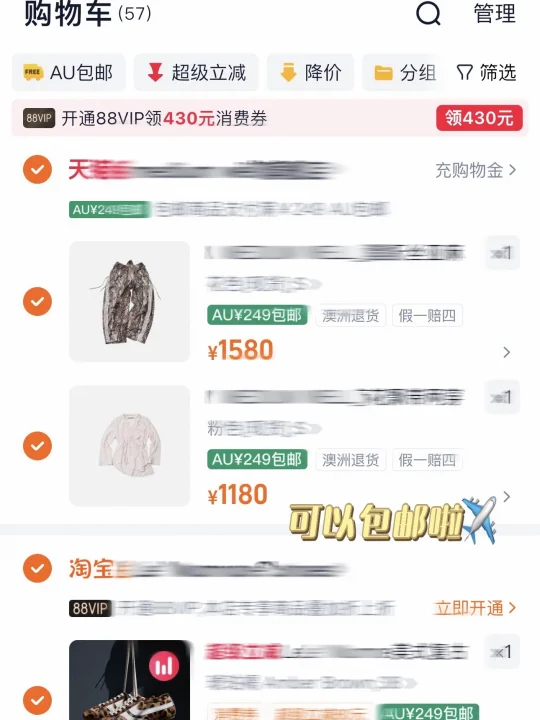重点来了姐妹们👉 现在买服饰满¥249就包邮到澳!➕💰还能直接送到家,最快10天到手❗️
