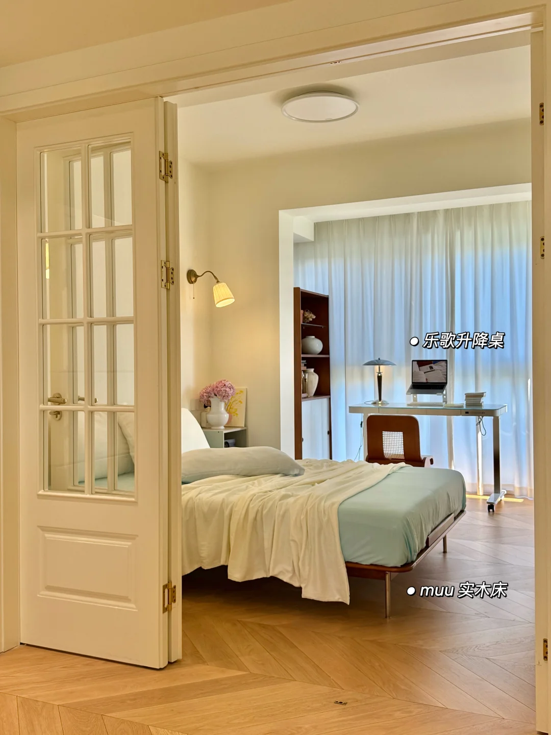 实木床架搭配不锈钢床腿,简约又不缺设计感