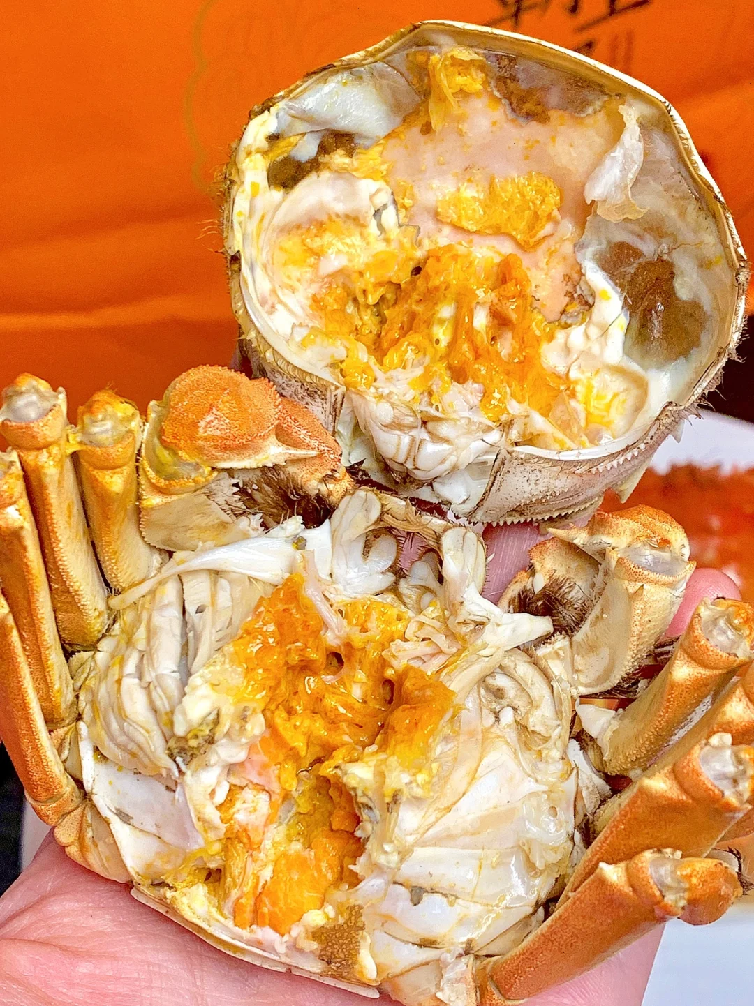 宿迁蟹是用螺狮、冰鲜鱼虾等其他天然饵料喂养出来的,清蒸最好吃!原汁原味的保留了螃蟹的营养和鲜甜!不需要其他蘸料!蒸出来就可以直接吃!口感鲜甜!肉质鲜嫩!满满的蟹黄!炫在嘴里!一口满足!