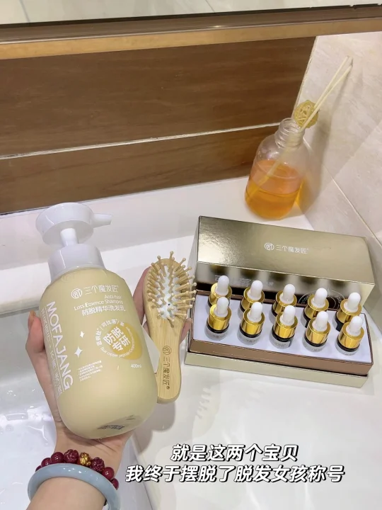 还有这瓶味道我很喜欢的防脱洗发乳,很好起沫,洗完蓬蓬的,头屑也是眼见的变少,秃头女孩福音✨ 姐妹们冲就完事了!(油头+细软塌真的会感动哭😭)而且这个品牌还特别会来事,买洗发乳还送气垫按摩梳,使用时感觉头部的各个穴位都有被按摩到,和精华液搭配着用简直完美!