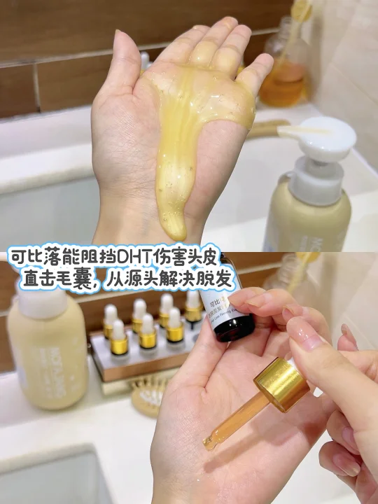 里面是高浓度可比落,这东西防脱可有一套了,至少我这么多天使用下来真的看到了效果,头发不再到处都是,而且头皮出油也变少了;这是水状的质地,手指稍微按摩一下很好吸收,用后清清凉凉的没啥负担感,整体来说很舒服!