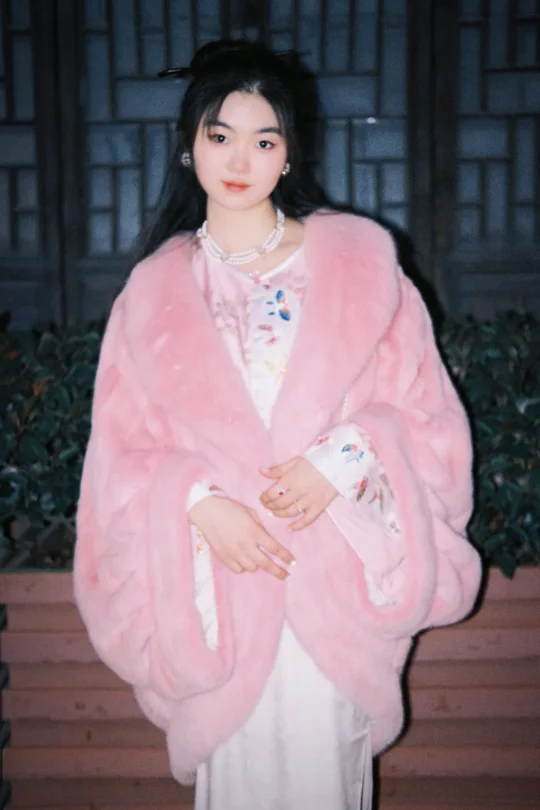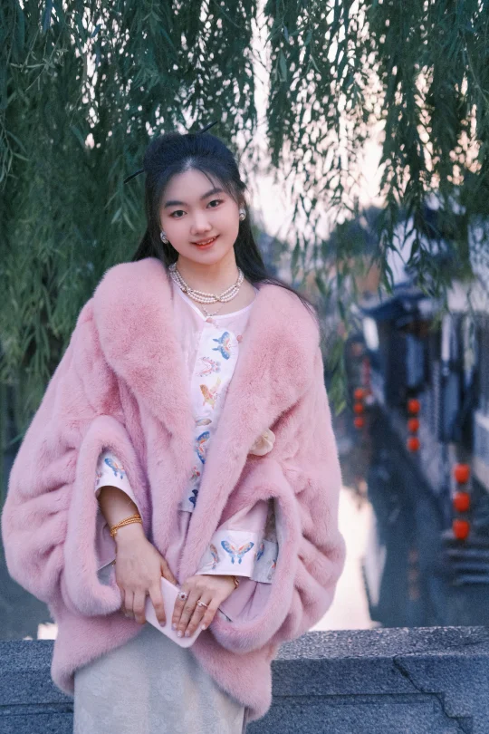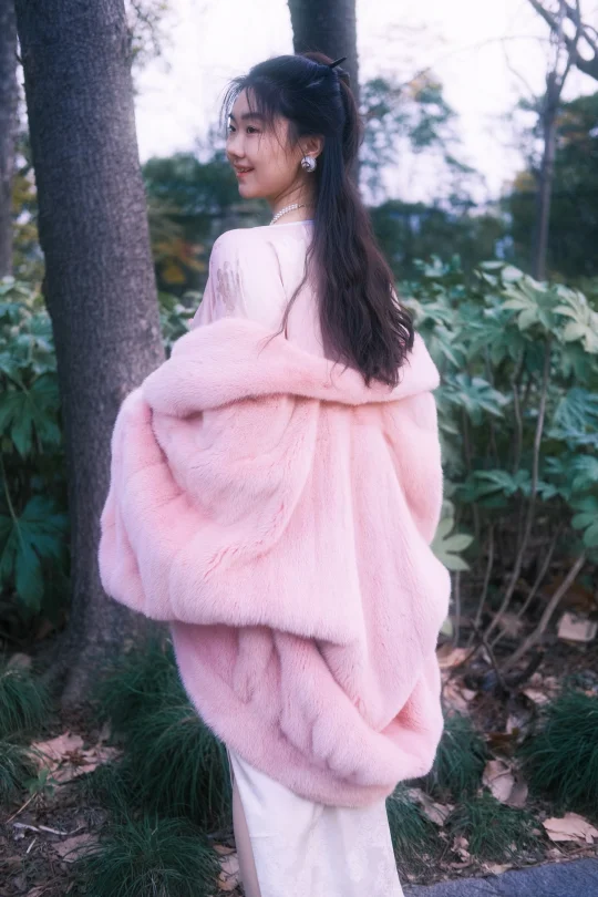 这是一件连内衬都是满刺绣丝带蝴蝶结的公主粉色斗篷水貂,双手合起来时袖口会变成一个蝴蝶结,走在路上仿佛一个与世界隔绝被粉色泡泡包裹的甜美公主 📷: