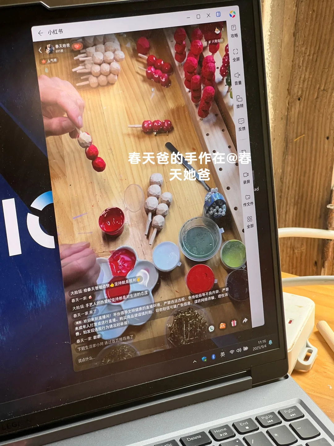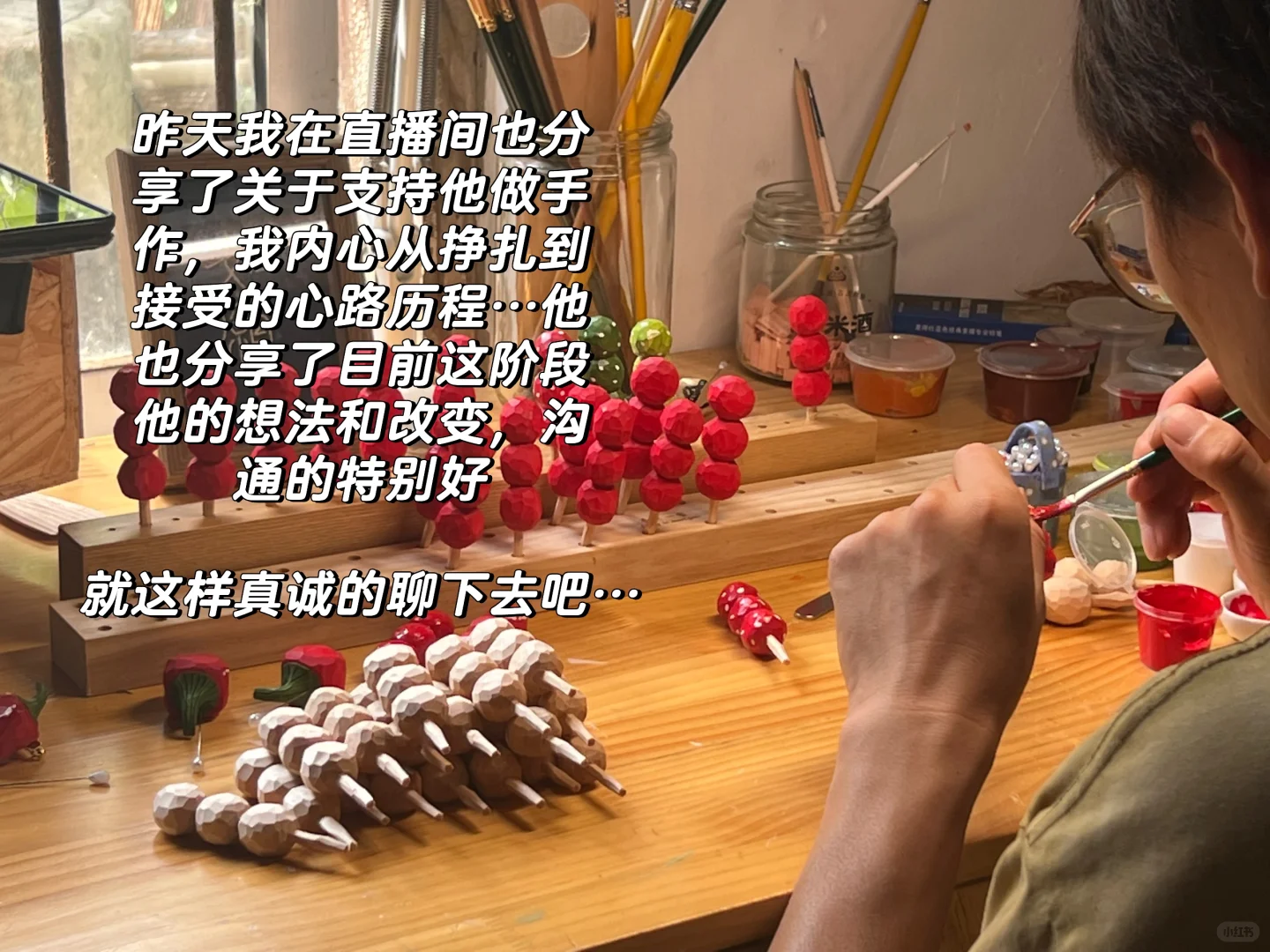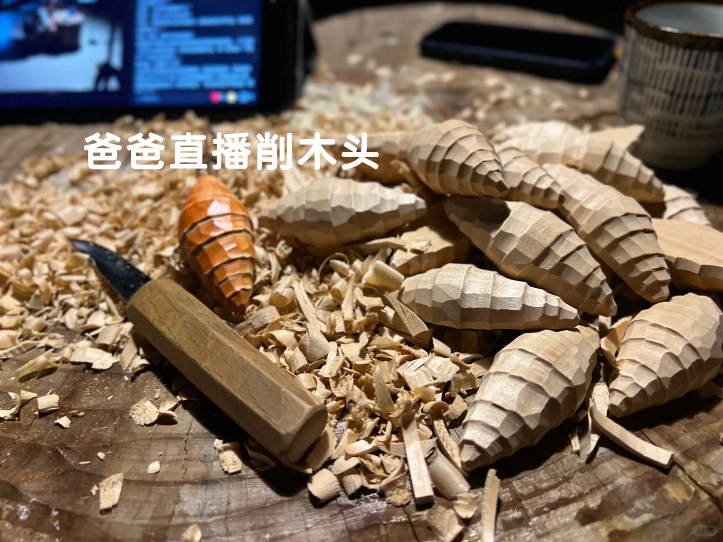 没有任何提前准备 ,之所以会开直播,要感谢春天爸。上周他突然和我说想在他的账号上直播做手工,既然每天也是要坐在桌子前削木头,干脆就支个支架开直播吧!
