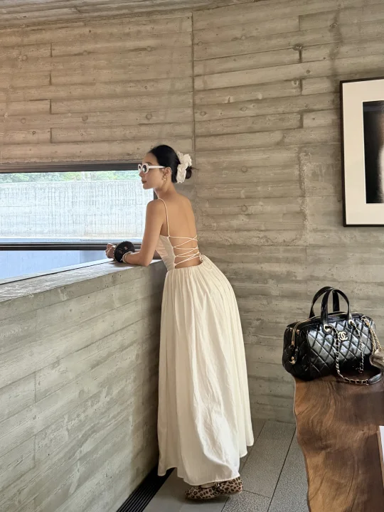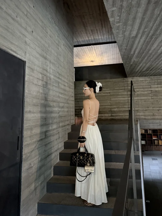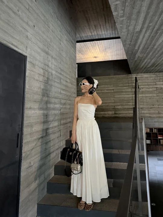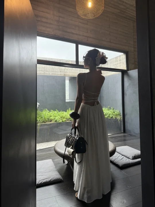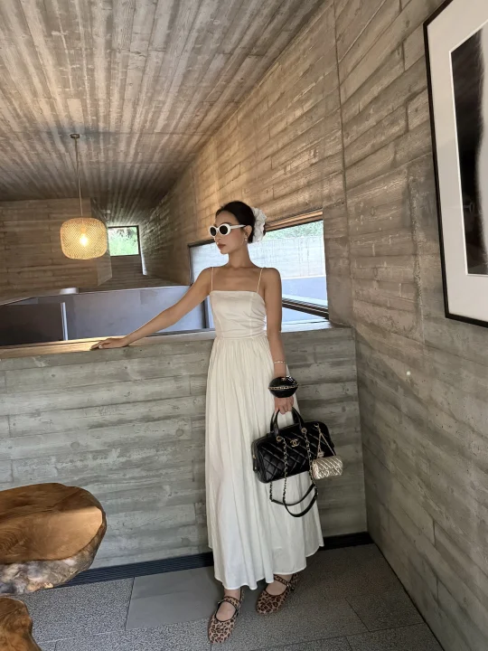 承德金山岭还是我推荐的短期度假好去处 环境干净 社区不大不小 短暂呆几天非常好 拍照这里是金山岭的上院 位置是在社区内部 关于穿搭⬇️ 白裙子:可以私信我分享哈 包包:chanel25A保龄球包 手腕包:chanel25A手腕包 挂件:chanel25A挂件包包