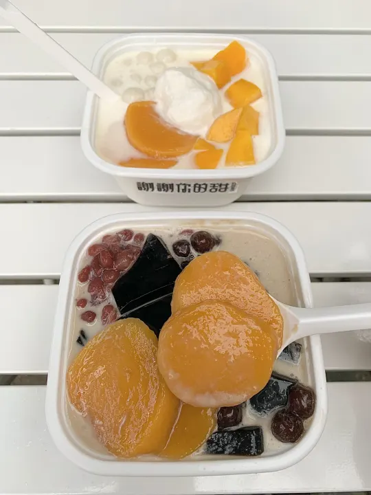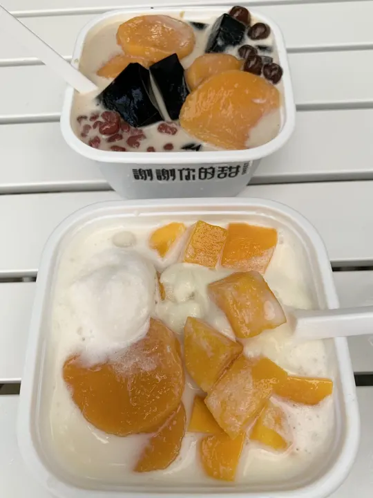 ✅芒果芋圆小丸子冰豆花:甜度真的太友好了!完全不齁腻😋,豆花嫩到入口即化,芒果给得超实在,小丸子QQ弹弹巨清爽~夏天吃超绝!