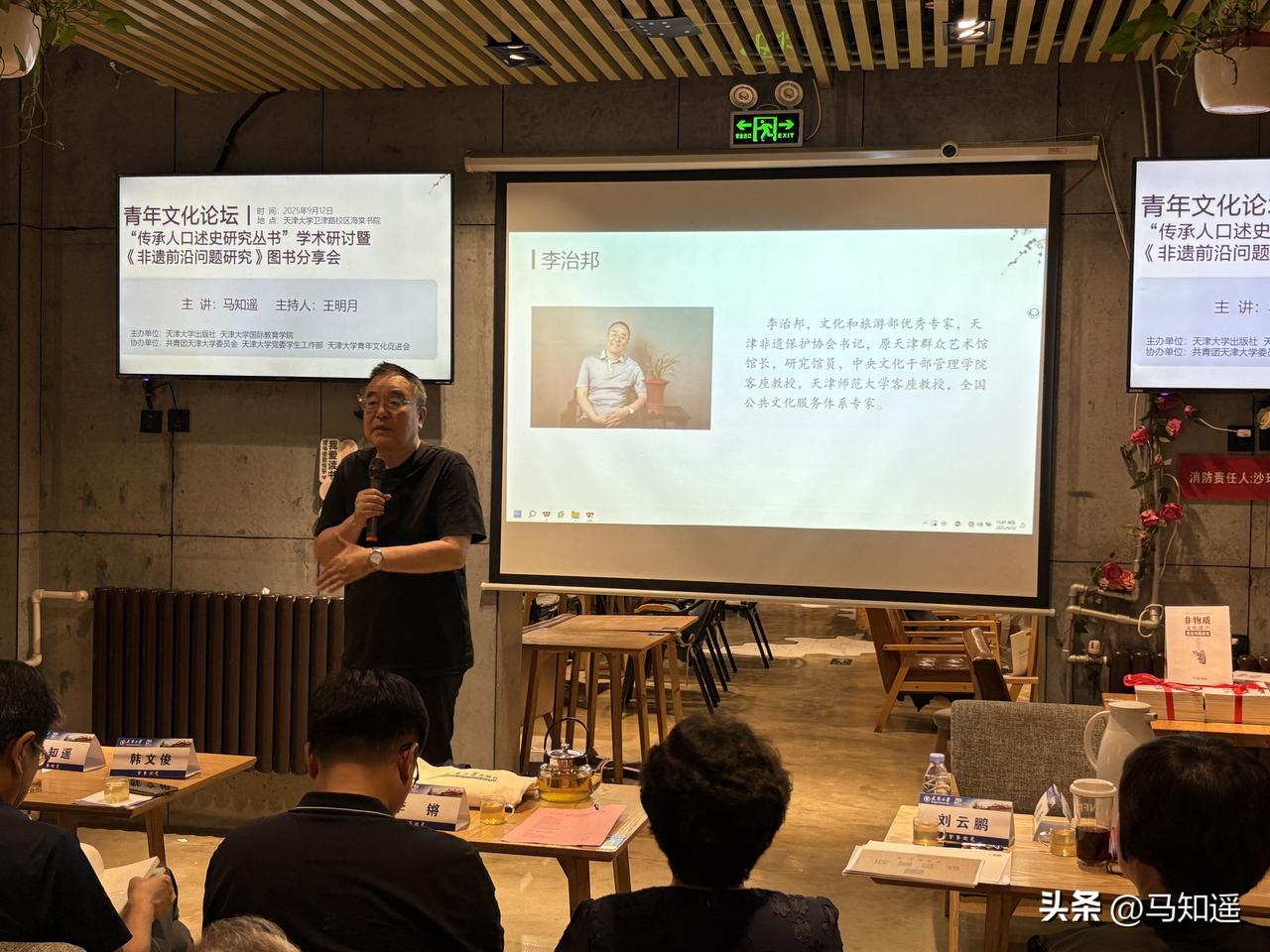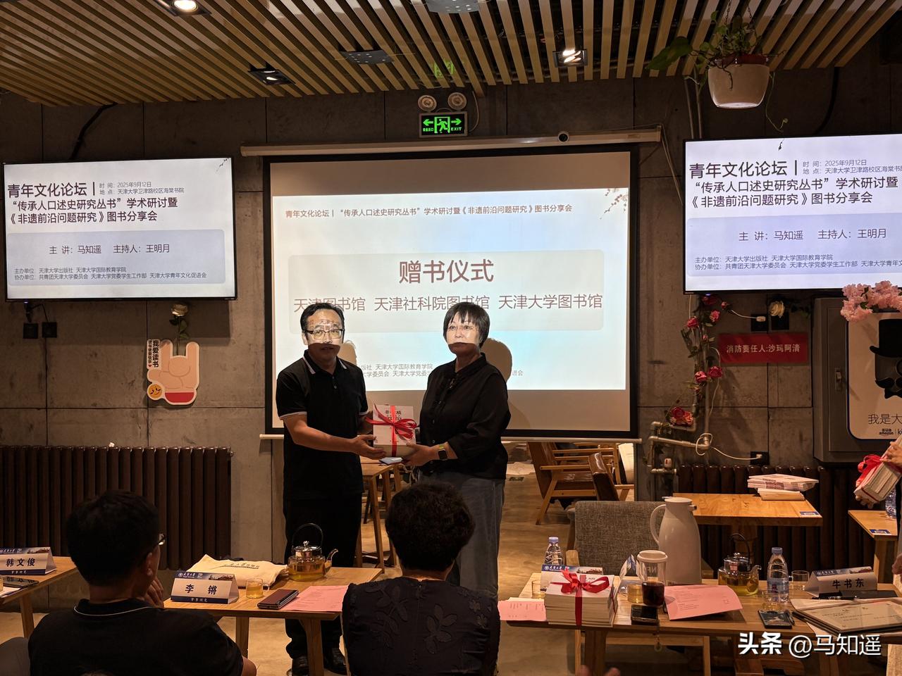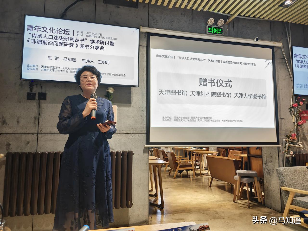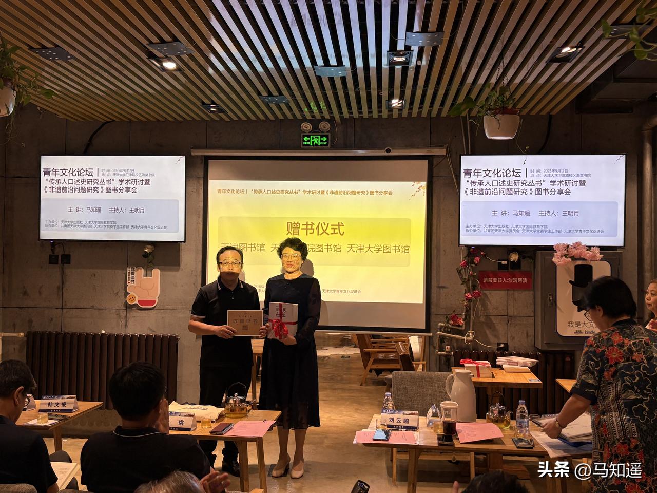 传承人口述史研究丛书130余万字,近二百张图片,为近五十位传承人树碑立传。让遮蔽的田野之花绚丽开放。只为了让他们树立自信,激发传承活力。今天隆重举办十期八年五本传承人口述丛书发布和分享。既是对过去十年时光的回顾,也是对十年心血的纪念。感谢来自天津大学出版社和国教学院的支持,感谢来自天津市各文化单位领导同行的关切。此为总结,又是重新出发。匆匆为记。