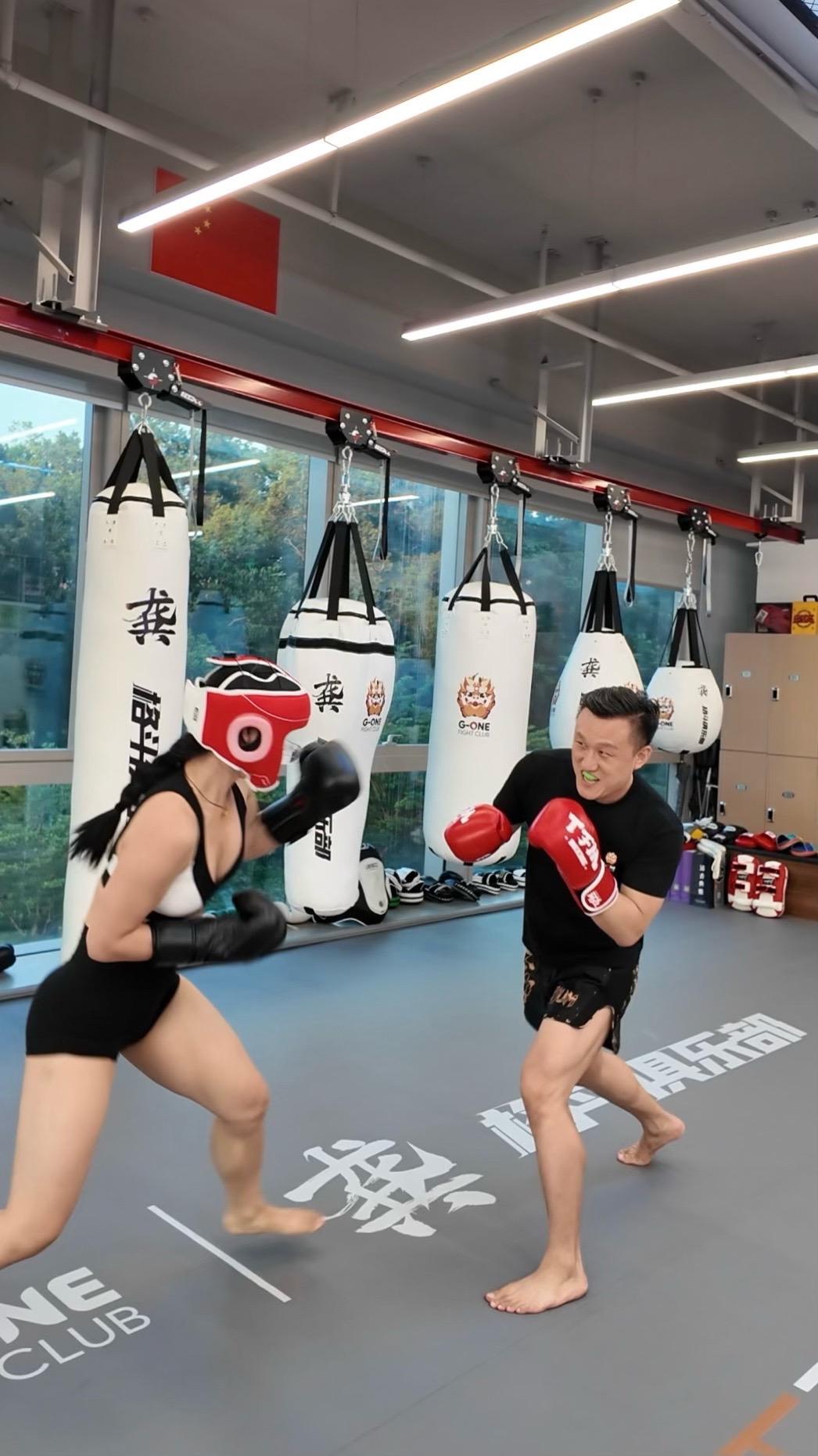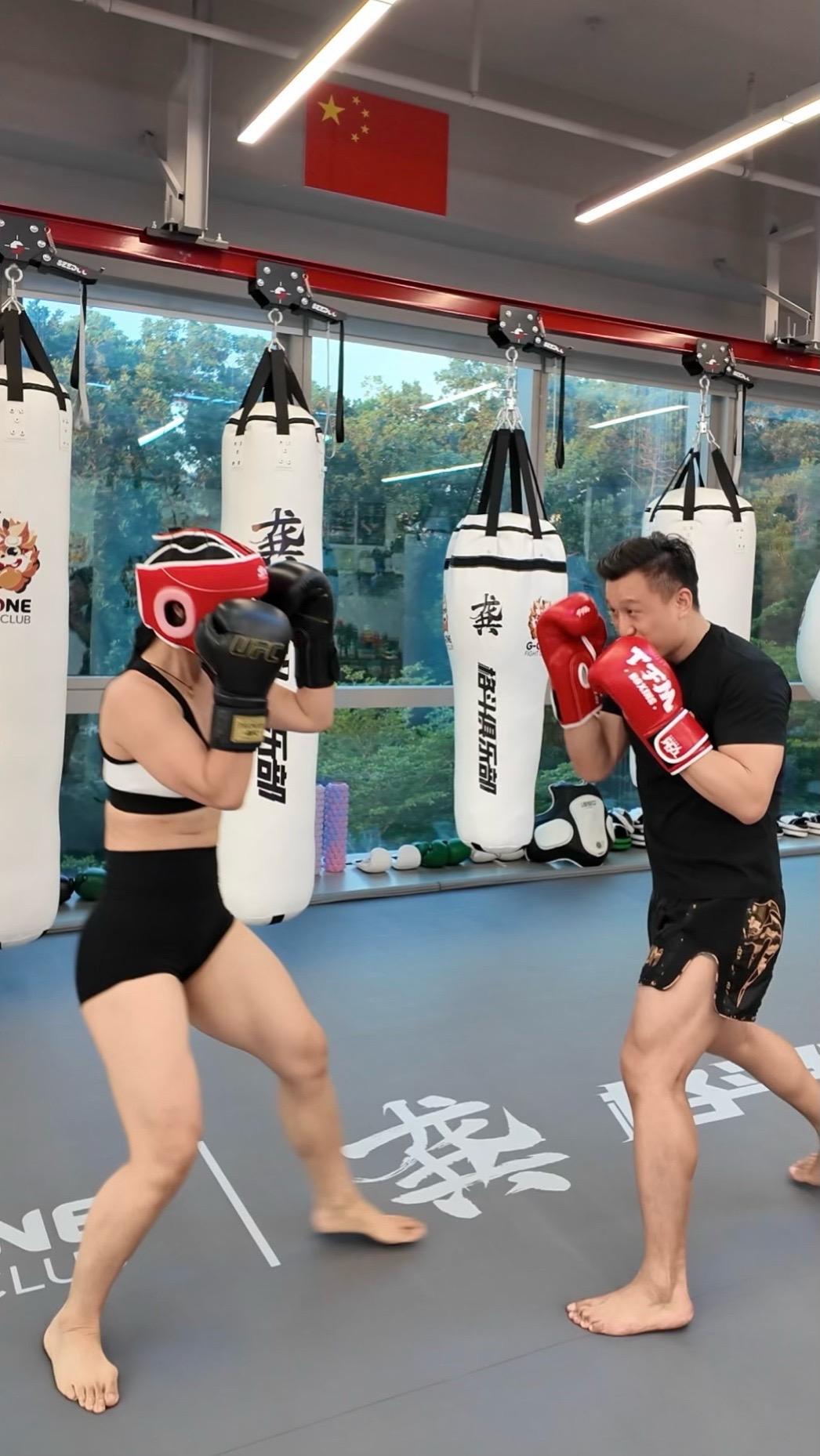 第一次尝试实战: 即便有保护,真打的时候已经没有拳法了😂虽然是花拳绣腿,对于普通人健身来说,综合格斗式心肺锻炼+燃脂完全足够了,体能提升,专注力,爆发力,敏捷性,协调性,不得不说减脂效果是真好,最近胡吃海喝也没有胖哈哈!想尝试一下的,教练说了,报我名字打(骨)折😄,最后秀一下教练给我用的重量级UFC拳套🥊,很帅!