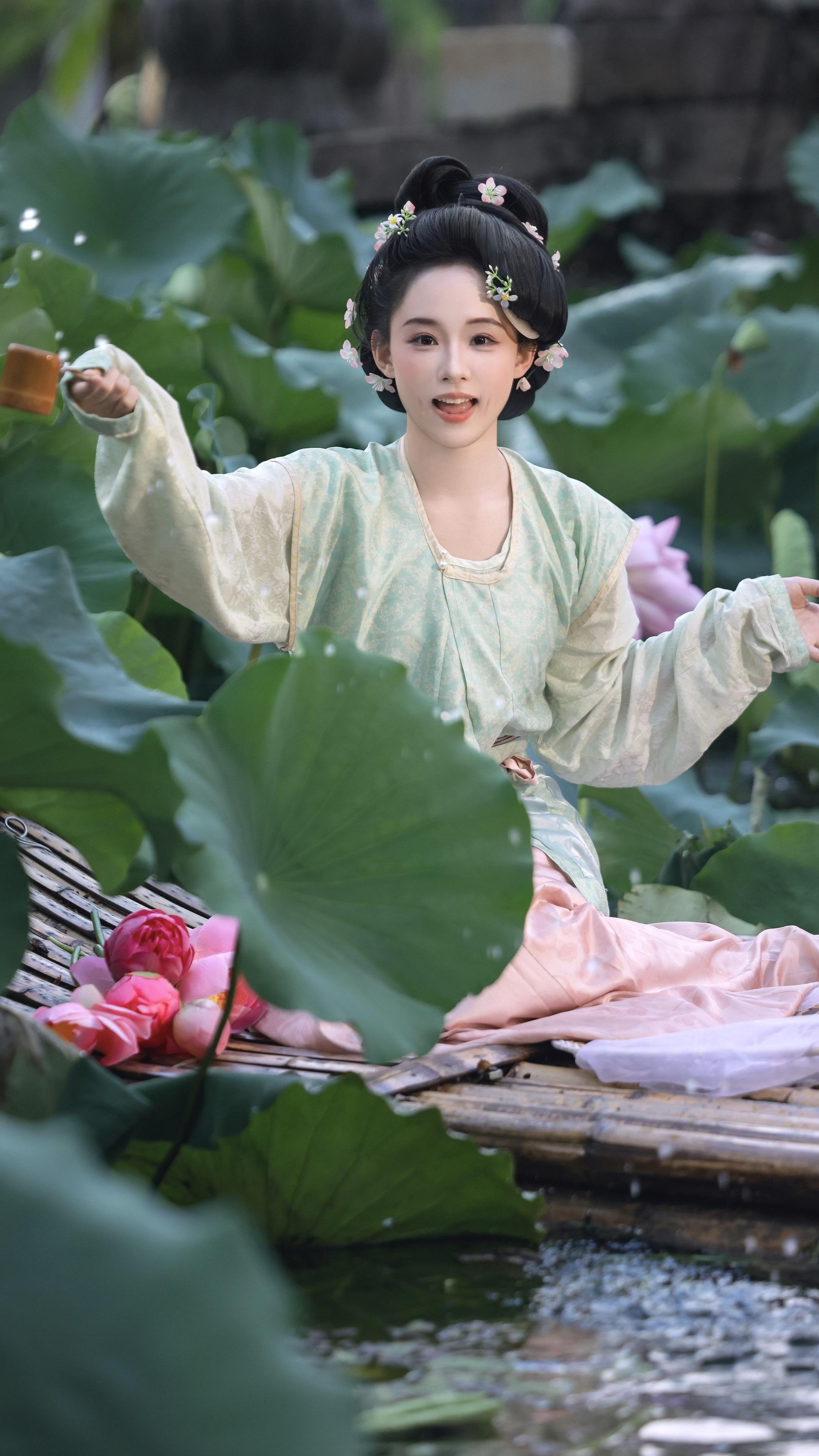 抓大鹅采莲花。出镜:妆造