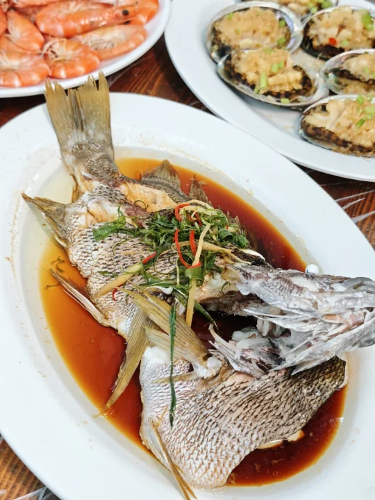 原汁原味海鲜控必冲!清蒸才是yyds!🐟 🌊海鲜本味!这家靠现捞鲜味赢很大~ 店里超大海鲜池,现点现捞现做👏👏👏 ✔揭阳人海鲜 📍青澳湾碧海蓝天2栋16-17号店面 🈺 10:00-22:00 🔸清蒸海鱼火候刚好,鱼肉嫩到夹不起来~蘸点酱油就好鲜甜! 🔸白灼虾🦐Q弹清甜,根本不用蘸料!就吃这个本味 🔸清蒸龙虾墙裂推荐~肉质饱满鲜甜,葱蒜提香增味,还有虾膏 环境宽敞明亮,海鲜池现捞现杀,新鲜度没得说! 吃的就是一口海洋的味道!🌊姐妹们冲
