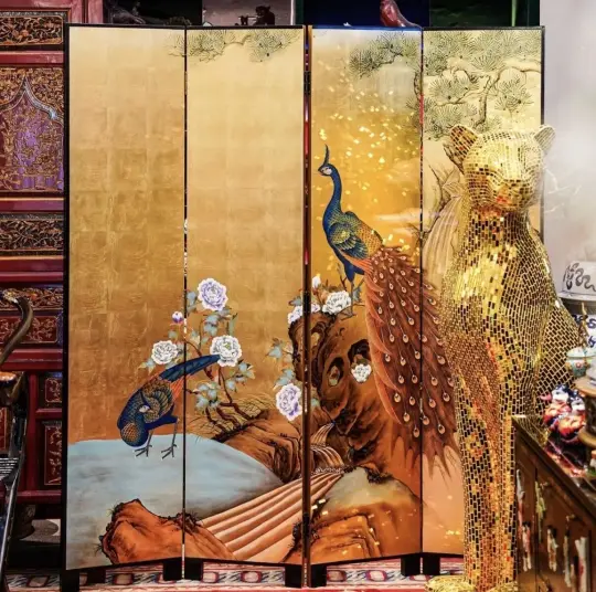 金箔屏风 挂衣架落地 屏风隔断 法式中国风 中式家具 古典家具