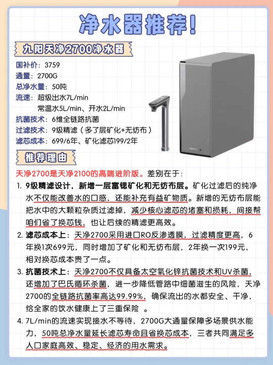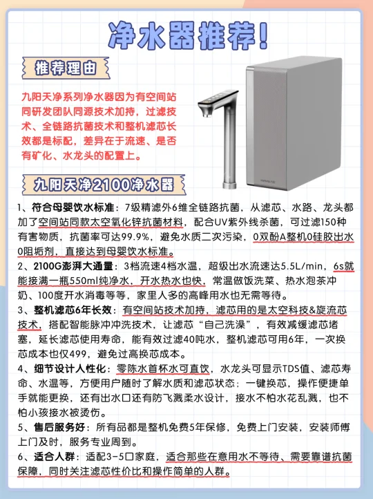 综合多方面剖析给大家推荐这款:九阳天净2100净水器!