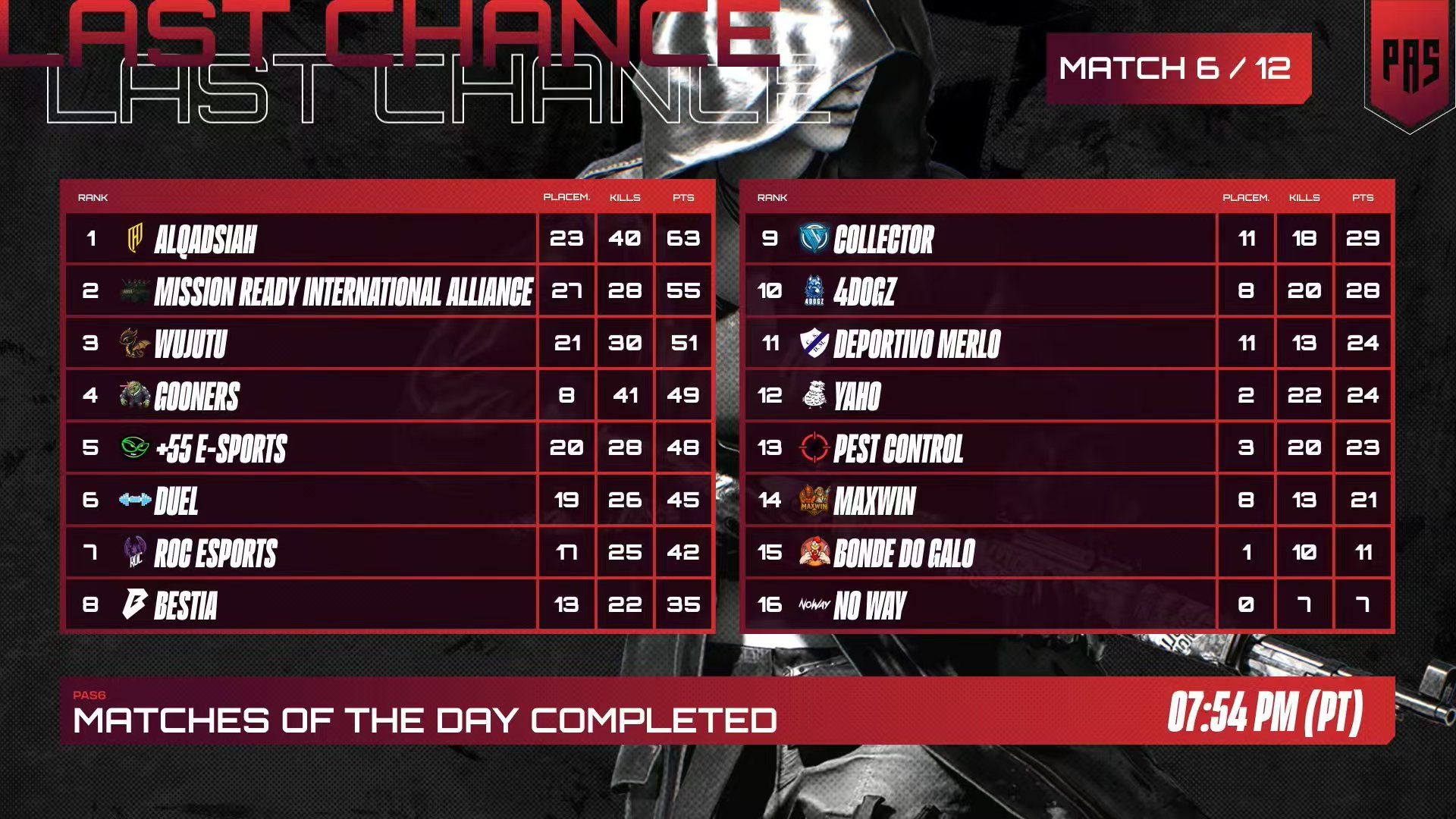 虎扑09月14日讯PAS6最后机会赛第一日结束:卡西迪亚获得第一]