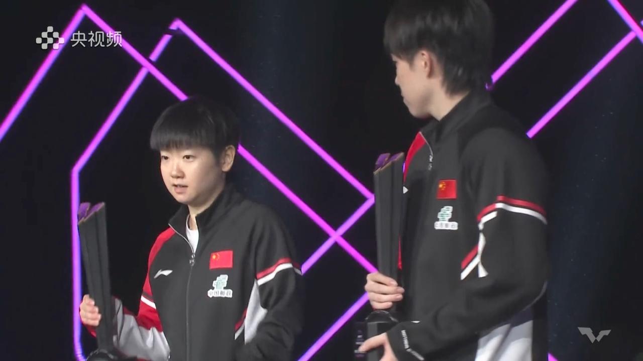 激动人心的时刻,澳门冠军赛男、女单打冠军合影留念!恭喜孙颖莎、王楚钦! 领完奖杯的小王同学大概跟大家一样的心情,焦急地等待着莎莎的出现。王同学的一番左顾右盼,把我都带着急了,差点以为冠军合影环节被取消了。 其实有人明明心里很开心,又不敢表现出来。一个明媚、可爱,一个严肃、娇羞,只想用两个字来形容[偷笑]。 两小只都赢了,同框了,今天可以暂时原谅一些不美好了。期待下个顶峰相见,未来继续加油!