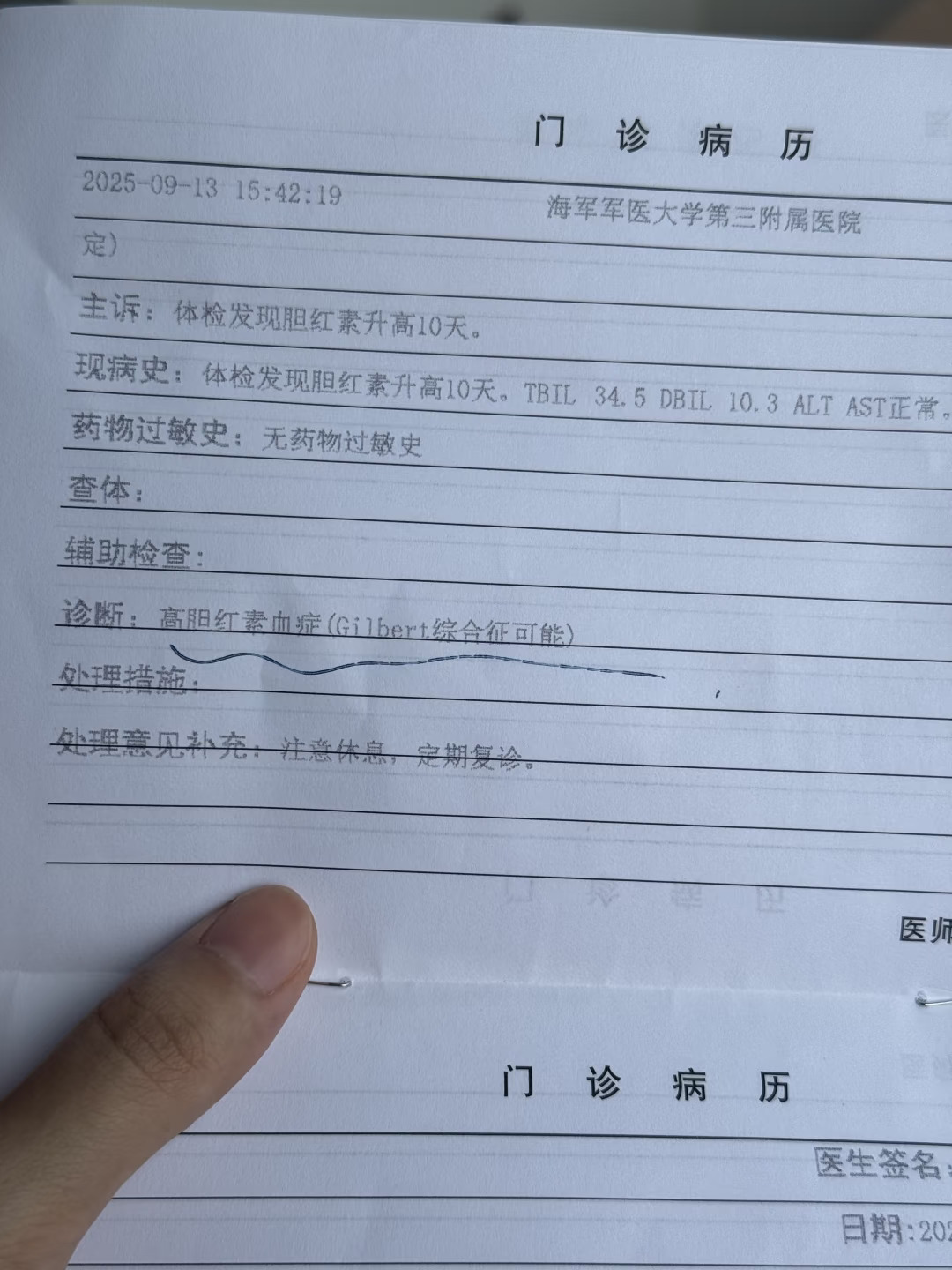今年体检确诊美女病—吉尔伯特综合征