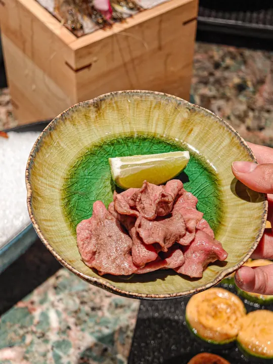 🥩雪花牛舌yyds!:纹理像大理石一样的牛舌🥓厚度刚好,烫8秒入口即化!奶香混着肉香在嘴里爆开,幸福感拉满💯