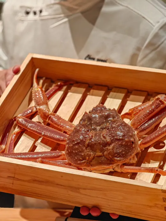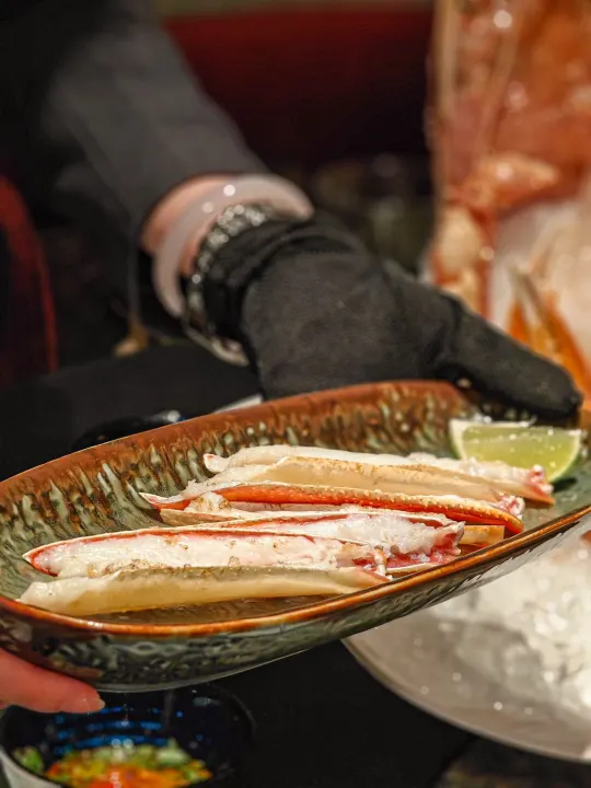 🦀松叶蟹:师傅现场拆分摆盘,蟹腿晶莹剔透像艺术品✨下锅涮10秒鲜甜爆汁,蘸特调酱汁jue了!