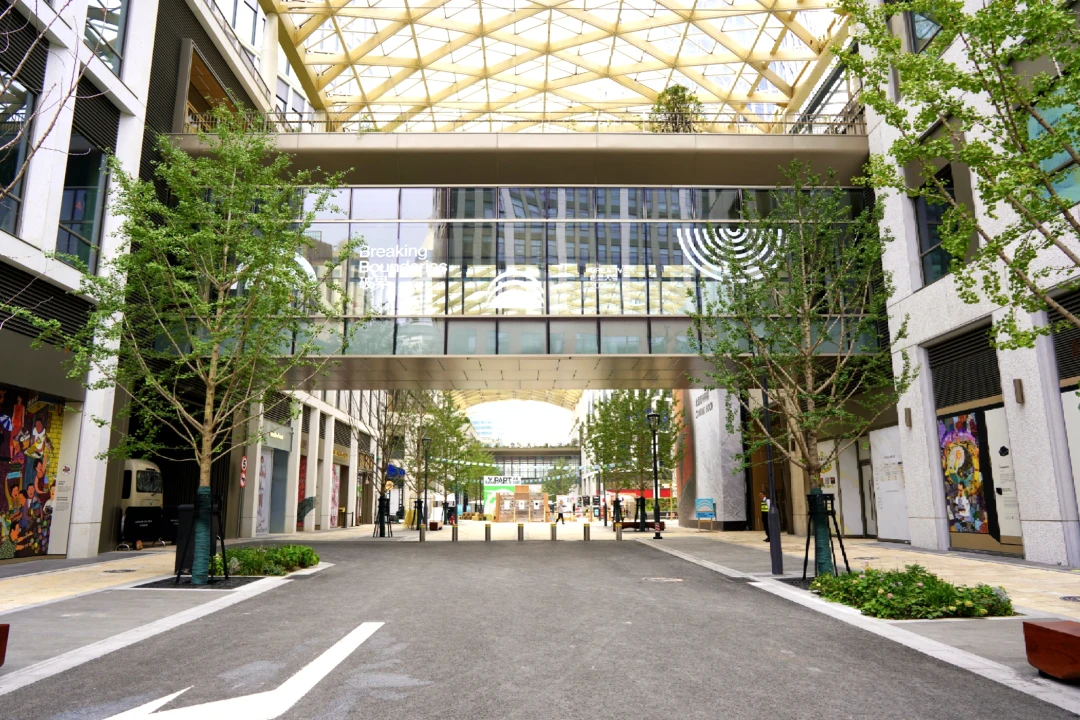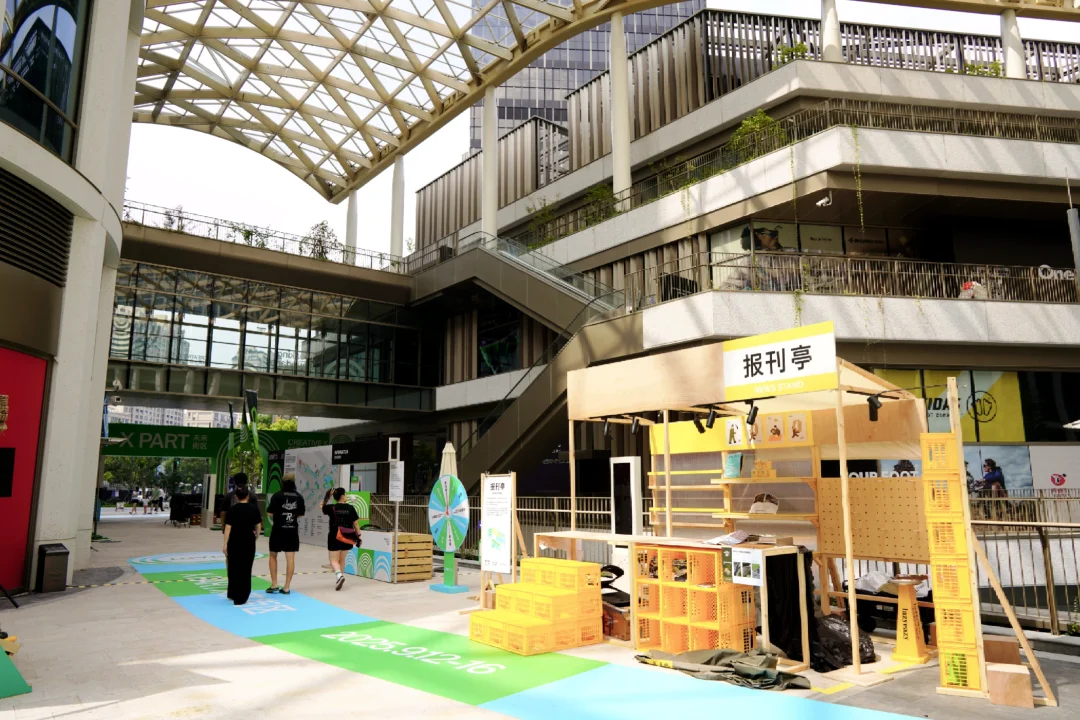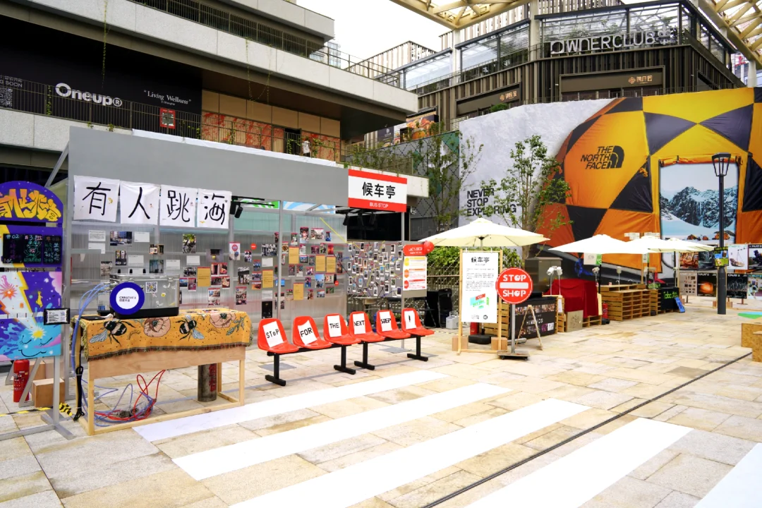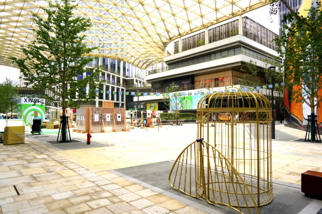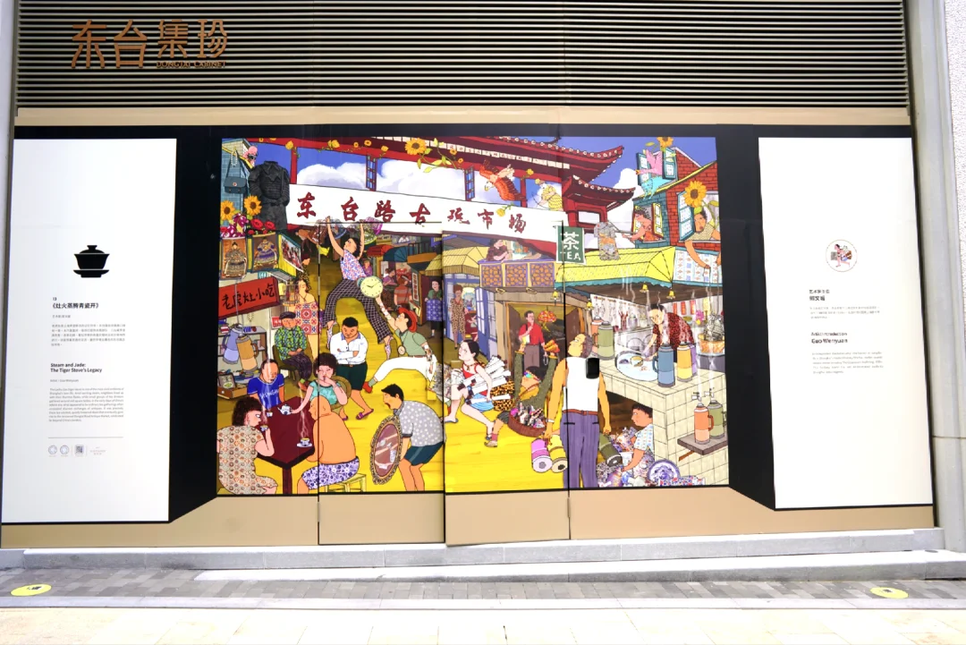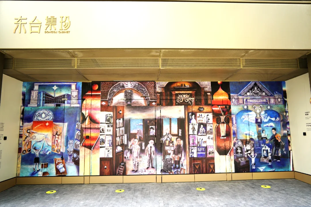 开放式空间中的【东台集珍】艺术创作,讲述着东台路前世今生,中庭全景天幕开放空间,比起普通的室内商场,有更多的活动和互动属性,极具调性。