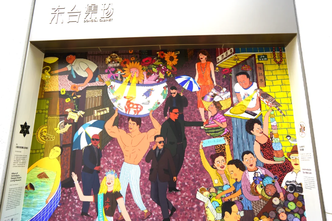 再说说我印象比较深的“东台集珍”,主办方是下过功夫的。我就谈谈自己感受哦,就是现场一共有12副画,如果你有些背景知识,可以从画里找到很多周围老上海历史彩蛋!