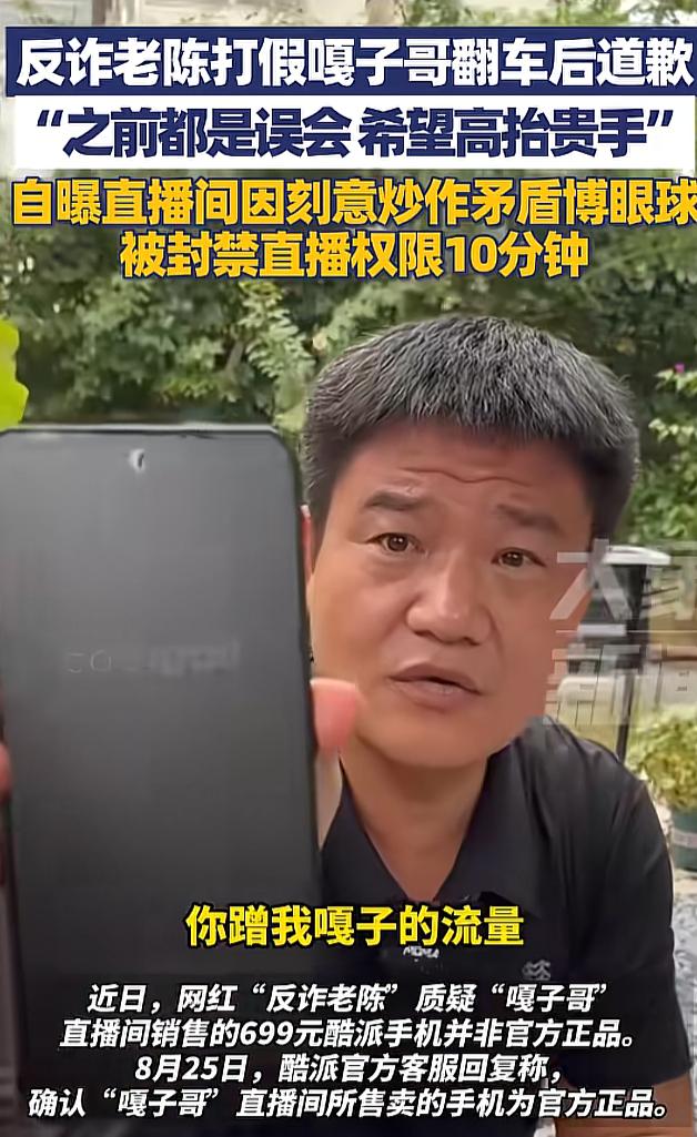 而老陈也在直播中公开叫板嘎子,挑明了嘎子直播间卖的酷派手机是假货,但可能是运气不好,嘎子卖了那么多假货,偏偏手机是真的,而老陈直接撞在了抢眼上,最后用道歉平息了舆论。