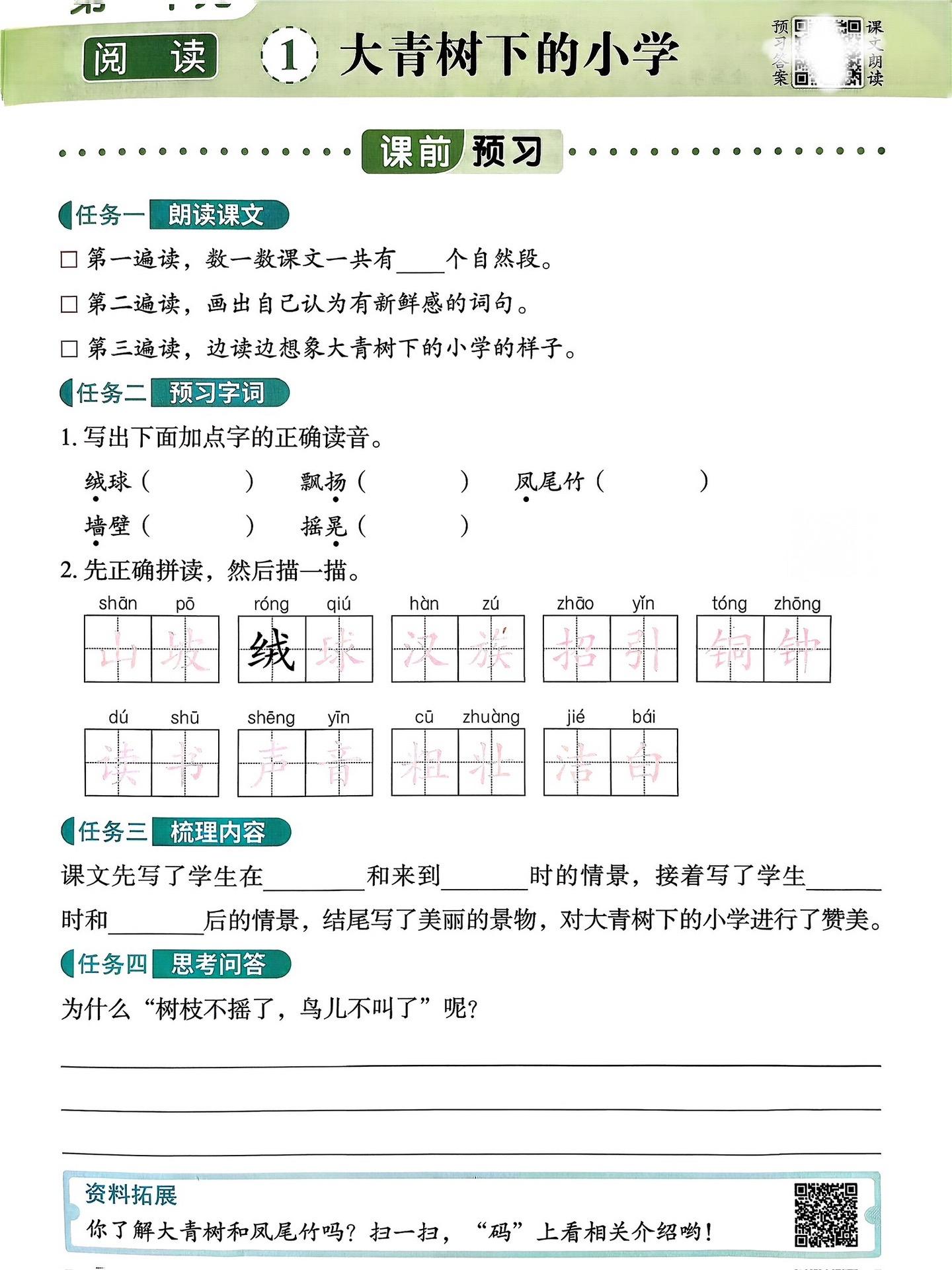 三年级上册第一课《大青树下的小学》笔记。 拓展:我国有56个民族,其中...