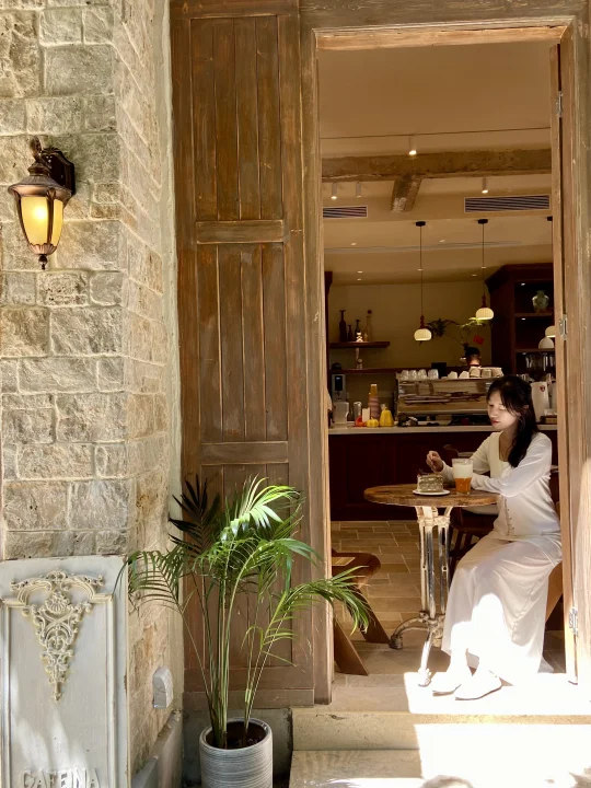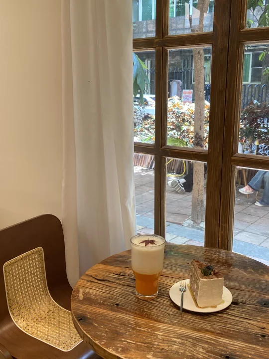 这家店有种不在国内的美✨ 这家是咖菲纳新店过来打卡一下✨ 店里都是复古原木色装修 一进来就感觉非常治愈😌 门口复古装饰和外墙拍照很出片👍 ☀️阳光透过树荫照进店里🍃 每一处都好出片chill ~度假风满满~ 在这里呆一下午☕️真的舒服😌 里面的蛋糕和饮品颜值在线☕️🍰 出品也很惊喜🍥