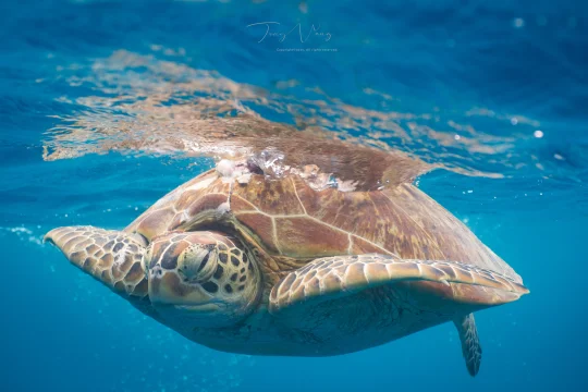 绿海龟是沙巴州和仙本那的名片,它们笨重而从容,像珊瑚礁中的智者。