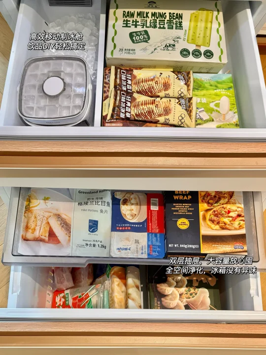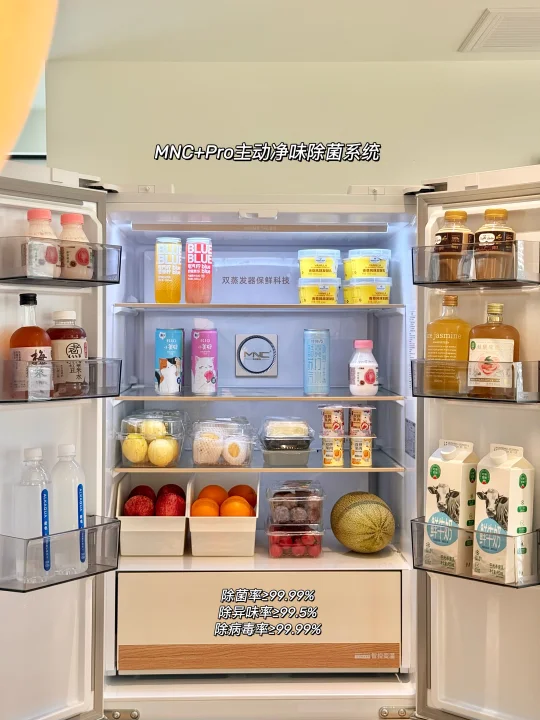 双蒸发器系统,冷藏MNC+Pro主动净味除菌系统,让食物保鲜不串味,还能实现除菌率≥99.99%,除异味率≥99.5%,除病毒率≥99.99%;冷冻区也实现了全空间净化,打开冰箱再也没有一股怪味道了~~