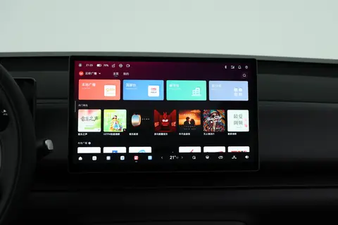银河E5配备10.2英寸液晶仪表盘和15.4英寸2.5K超高清悬浮式中控大屏,车机系统为Flyme Auto,由7nm工艺的龍鹰一号国产芯片驱动,算力接近高通8155。