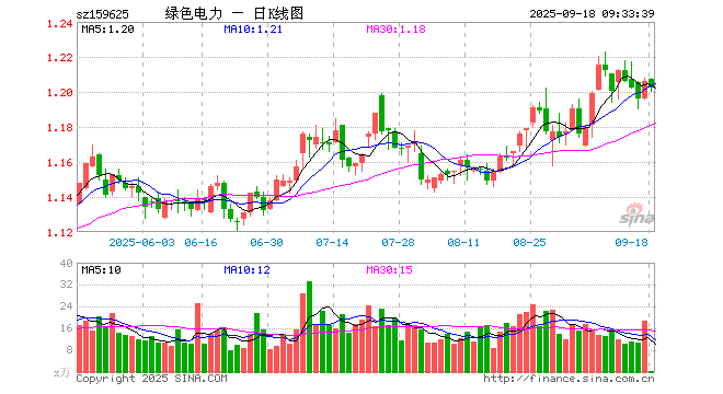 9月18日,绿色电力ETF(159625)开盘涨0.08%,报1.207元。绿色电力ETF(159625)重仓股方面,长江电力开盘跌0.04%,三峡能源涨0.23%,中国核电涨0.00%,国投电力涨0.07%,川投能源涨0.14%,中国广核跌0.27%,国电电力涨0.00%,华能水电涨0.00%,华能国际涨0.27%,申能股份跌0.13%。
